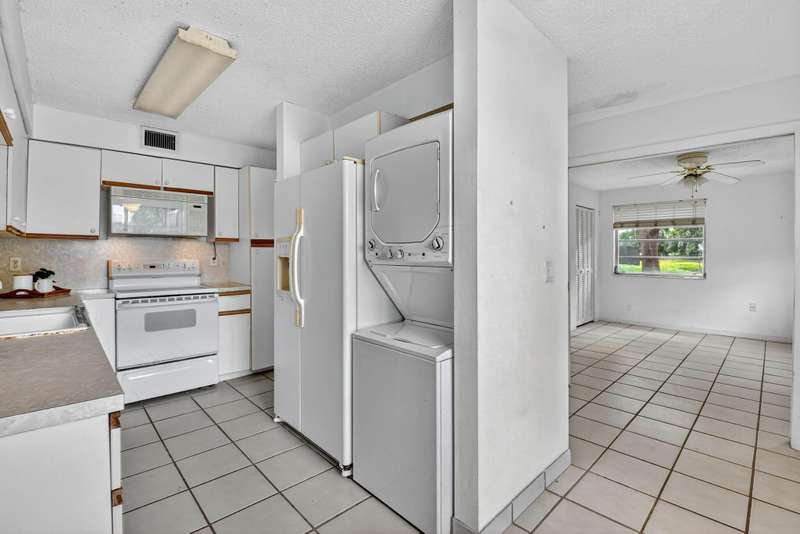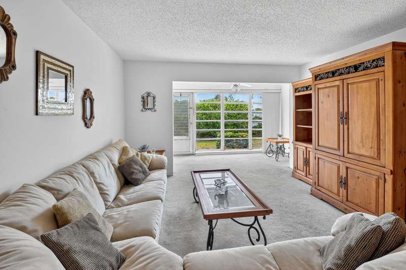 Ready for your personal touch! Spacious 2BR/2BA first-floor end unit in the ever popular 55+ community of Palm Greens! Features are an eat-in kitchen, separate living/dining area, enclosed Florida room, washer/dryer, and flexible 2nd bedroom/den. Updates include new A/C (2024), new electrical panel (2025), and newer guest toilet. Bright and airy with extra windows! Enjoy low monthly fees including cable, internet, water, roof & exterior maintenance and all common area maintenance, building insurance. Exciting new 30,000 sq. ft. clubhouse with resort-style pool, pickleball, tennis, fitness center & more is coming soon. Rentals permitted after 2 years.