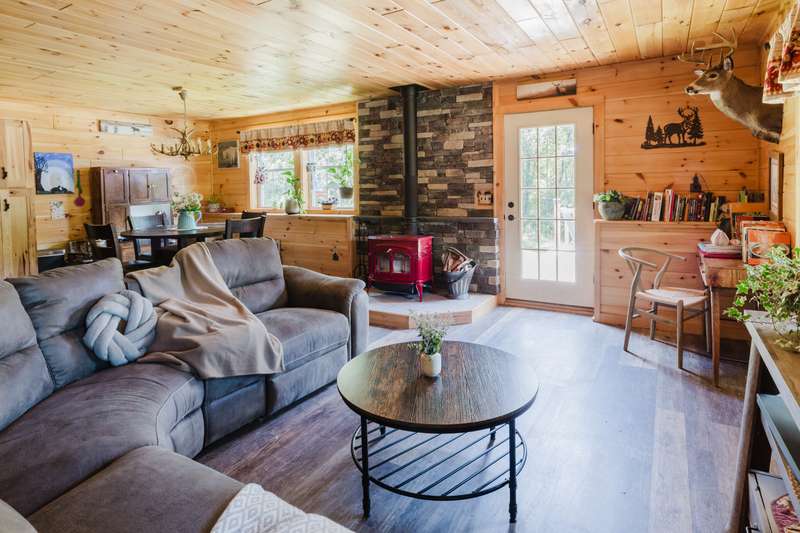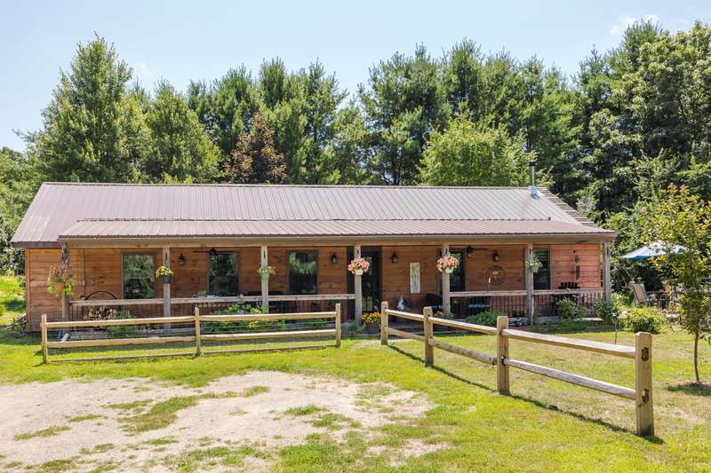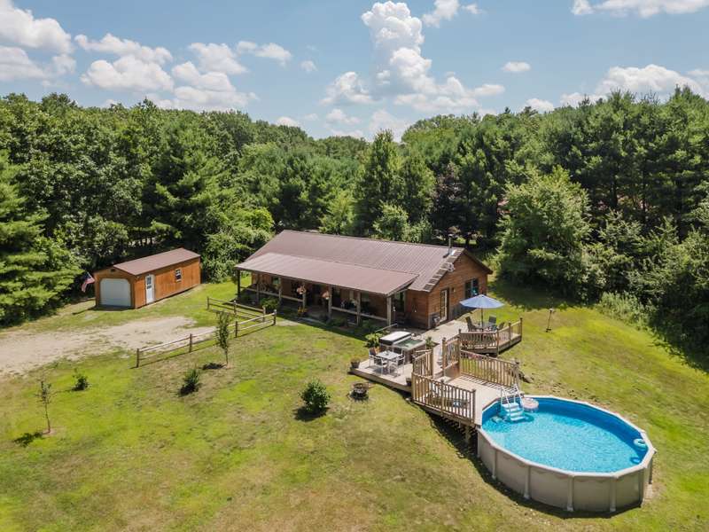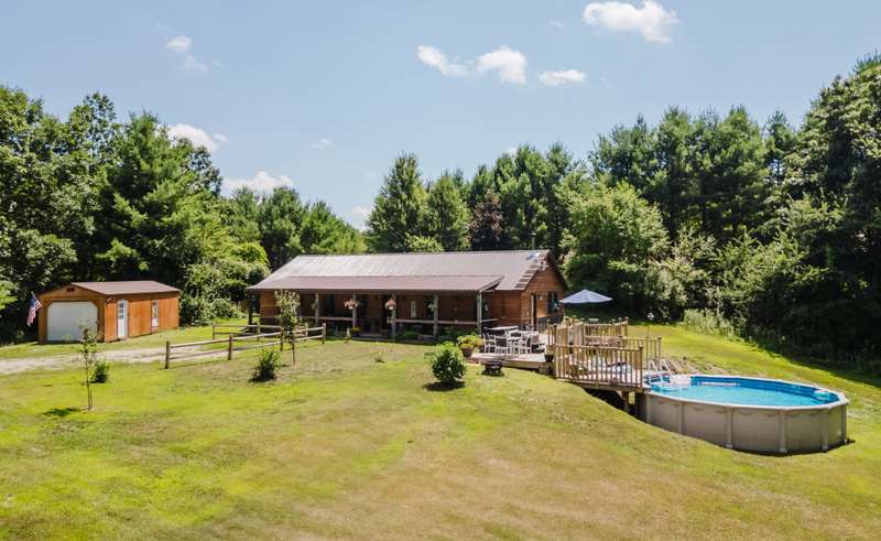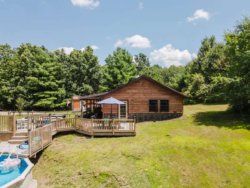 Introducing the Kinderhook Cabin, a well cared-for home where every detail has been thoughtfully considered and hand-finished by a master carpenter. Built in 2021, this ranch-style residence offers easy one-level living, a rustic-modern aesthetic and plenty of privacy, set on 5 acres along a beautiful winding country road between Kinderhook and Ghent. Step inside to a large entry hall that flows into a gracious open space for cooking, dining, and gathering anchored by a striking wood-burning stove. The U-shaped kitchen has stone countertops, a breakfast bar, tile backsplash, and solid wood cabinetry. Two bedrooms and two full bathrooms sit on the opposite side of the house--one with a stunning walk-in closet and en suite bath. The home has generous storage, including a separate laundry room lined with shelving.A rocking-chair front porch and expansive deck with hot tub and pool are made for all-day outdoor livingtake a dip, sit down for a long lunch, then have a late-night soak while watching the fireflies. Many improvements and amenities include a new metal roof, efficient heat pump with discreet ceiling cassettes, storage shed, and above-ground pool. The quiet yet convenient location10 minutes to Kinderhook, Valatie, and Chatham; 20 minutes to Hudsonis the perfect spot for both a weekend getaway or year-round residence.