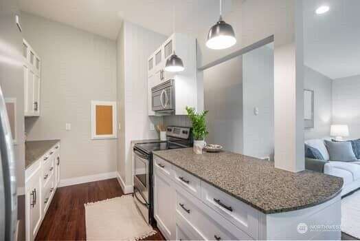 Top corner floor unit in the desirable Axis community. This remodeled home features a bright open floor plan with vaulted ceilings, stunning dark floors, cozy fireplace, and an updated kitchen with stainless appliances - newer fridge - & granite countertops. A walk-in closet, laundry in-unit and extra storage make this live large. Cabana clubhouse and common areas with rare pool just outside your door await for dreamy entertaining. Don’t miss the secure gated entrance and two reserved parking spaces (one covered!) Minutes to Link Light Rail, I-5, award-winning Edmonds schools, shopping, great parks and more! Below rental cap with healthy HOA - a true investor's dream!