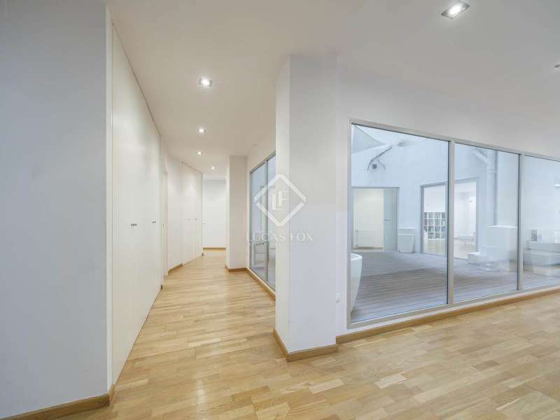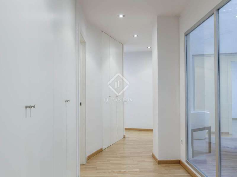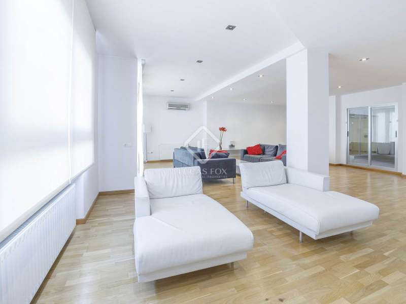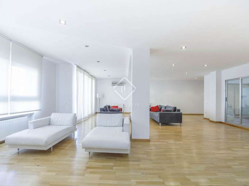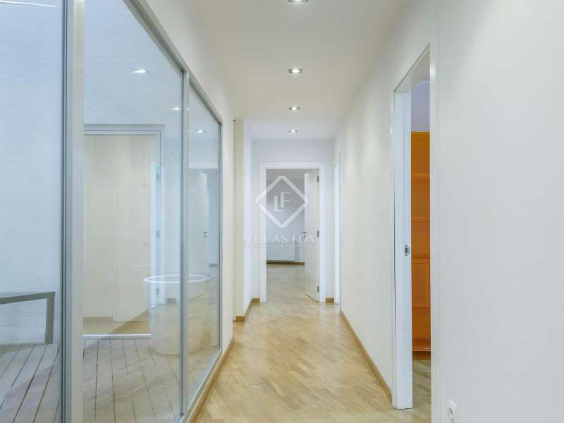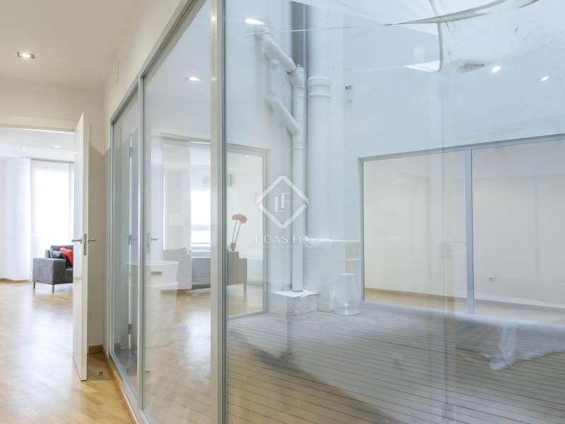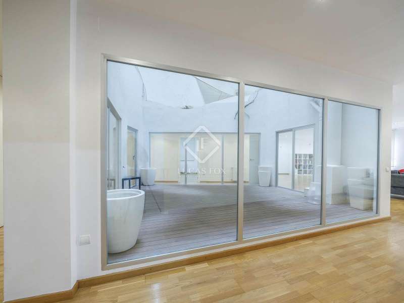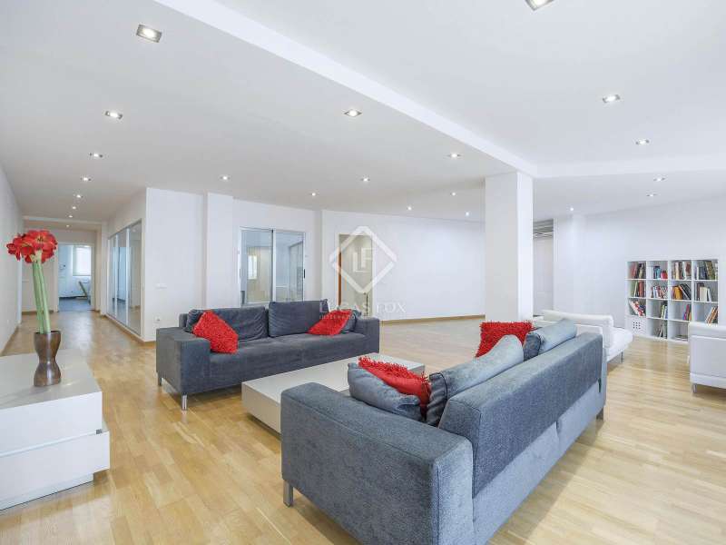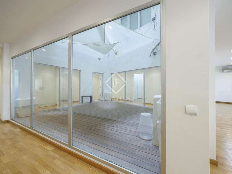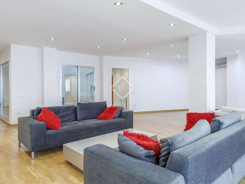 Lucas Fox presents this 286 m² apartment in a 1963 building located in the centre of Valencia, with a large number of restaurants, bars, shops and other amenities in the immediate vicinity. The apartment has been recently renovated by architect Manuel Portaceli, finalist for the Mies Van der Rohe award. It offers a modern design and stands out for the quality of its furnishings. The different rooms of the property are distributed around a beautiful and cozy courtyard with a glass door, with wooden floor and cozy sofas. From the patio, you can see the fantastic living-dining room, which has designer furniture and exquisite decoration, as well as access to a balcony with magnificent views of the central commercial area of Valencia. At the entrance, there is a large and modern kitchen fully equipped with appliances such as a refrigerator, oven, washing machine, dishwasher and dryer. It has two single bedrooms, one of them with a private bathroom bathroom, and a double bedroom . A small corridor leads to the main bedroom with its own full bathroom , dressing room and an integrated living area with table and chairs. All rooms and hallways have built-in wardrobes. The property is equipped with natural parquet floor , gas radiator heating and split air conditioning in all rooms. Ideal for families and retirees due to its spaciousness and central location, close to schools, public transport and amenities.