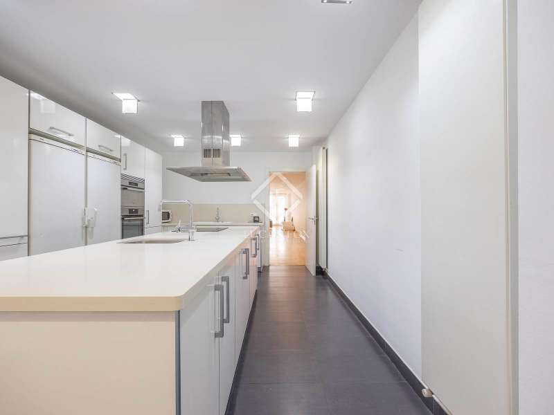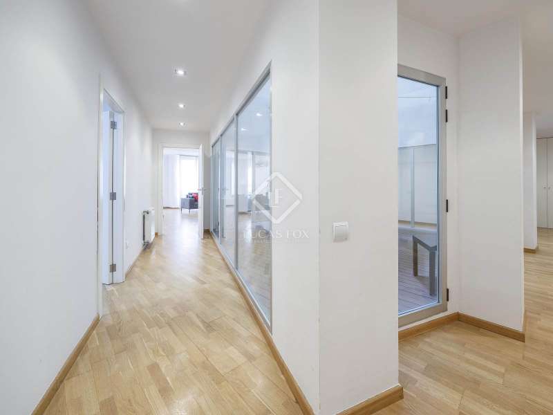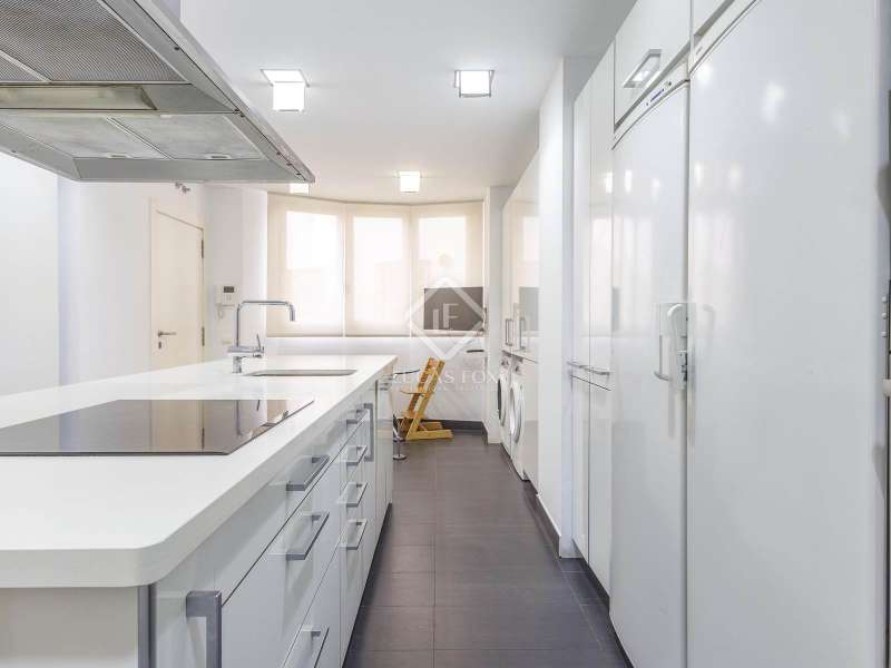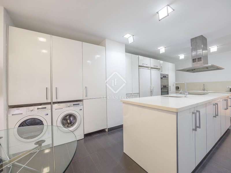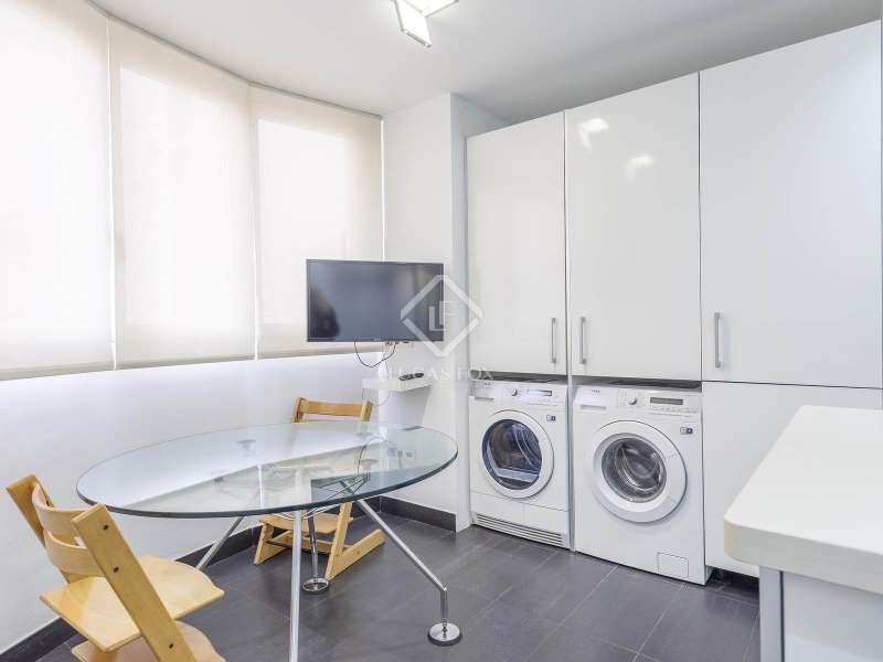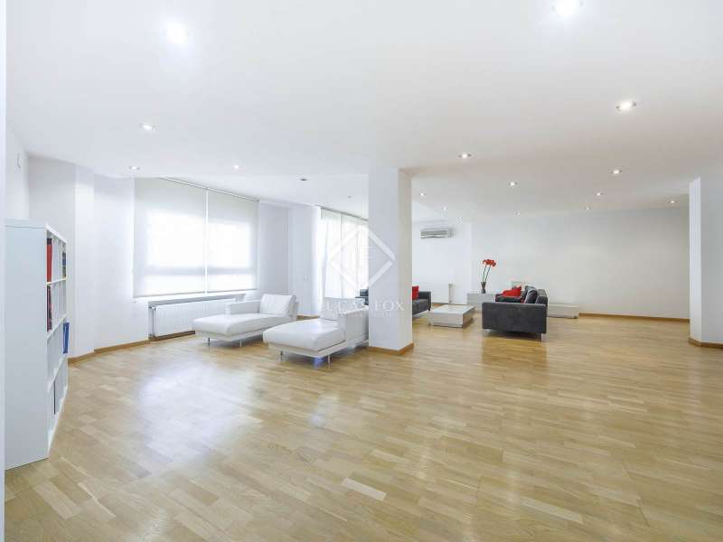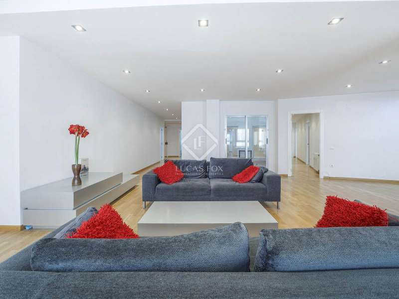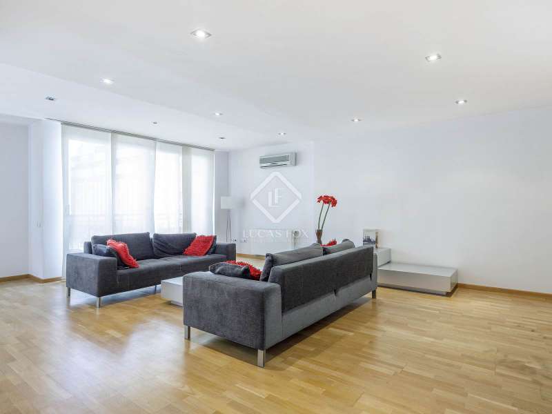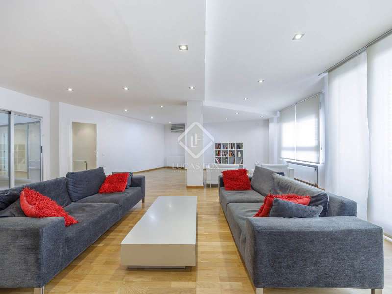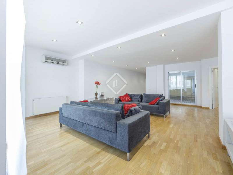 Lucas Fox presents this 286 m² apartment in a 1963 building located in the centre of Valencia, with a large number of restaurants, bars, shops and other amenities in the immediate vicinity. The apartment has been recently renovated by architect Manuel Portaceli, finalist for the Mies Van der Rohe award. It offers a modern design and stands out for the quality of its furnishings. The different rooms of the property are distributed around a beautiful and cozy courtyard with a glass door, with wooden floor and cozy sofas. From the patio, you can see the fantastic living-dining room, which has designer furniture and exquisite decoration, as well as access to a balcony with magnificent views of the central commercial area of Valencia. At the entrance, there is a large and modern kitchen fully equipped with appliances such as a refrigerator, oven, washing machine, dishwasher and dryer. It has two single bedrooms, one of them with a private bathroom bathroom, and a double bedroom . A small corridor leads to the main bedroom with its own full bathroom , dressing room and an integrated living area with table and chairs. All rooms and hallways have built-in wardrobes. The property is equipped with natural parquet floor , gas radiator heating and split air conditioning in all rooms. Ideal for families and retirees due to its spaciousness and central location, close to schools, public transport and amenities.