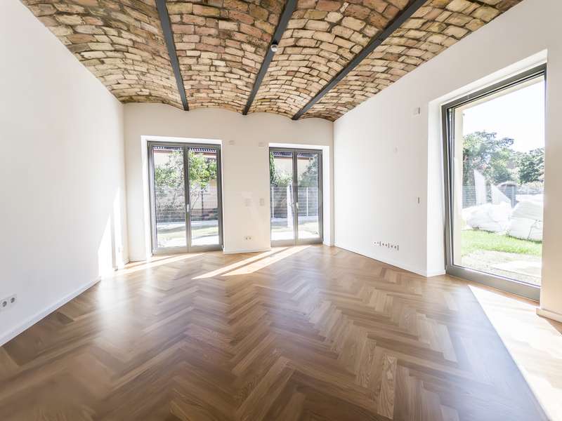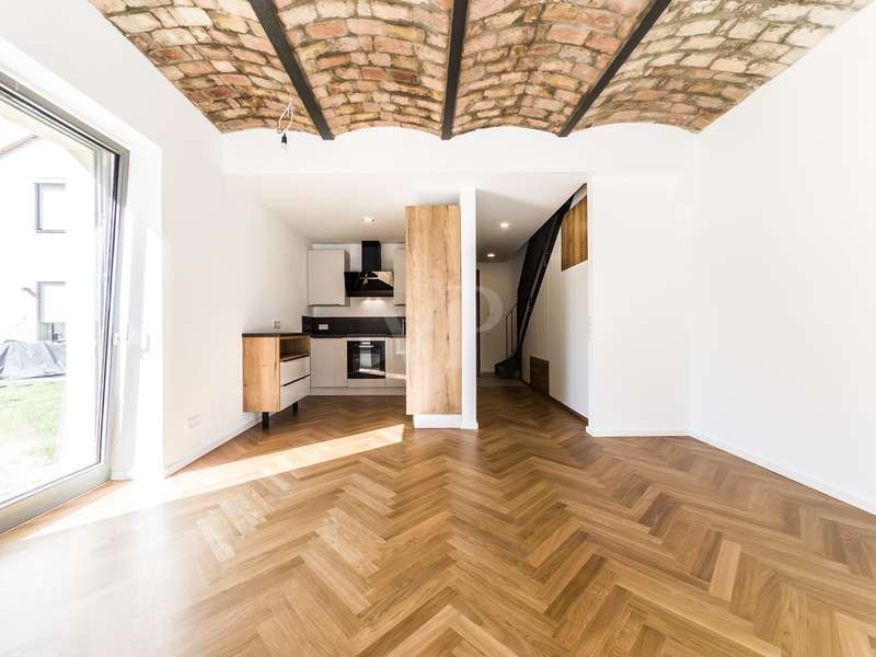 Welcome to your new home! This charming end terraced house, built in 2024, offers a generous living space of approx. 85 m², spread over two floors and three rooms. A real highlight of this house is the idyllic garden with terrace, which offers you plenty of space for outdoor relaxation. As you enter the house, you enter the inviting hallway, which is equipped with high-quality fitted wardrobes and a practical checkroom. Immediately to the right is the guest WC, perfect for visitors and everyday use. The hallway leads you directly into the spacious living and dining area, which impresses with its open-plan design and high-quality fitted kitchen. Here you will find plenty of space for cozy evenings with the family and social gatherings with friends. The living area is characterized by the impressive vaulted ceiling, which gives the room a unique historical charm. The high-quality real wood parquet flooring rounds off the elegant ambience and creates a warm, inviting atmosphere. An elegant staircase leads to the top floor, where the light-flooded daylight bathroom is located. Equipped with a large shower, this bathroom offers maximum comfort and modern amenities. The hallway on the top floor connects the two spacious rooms, which are ideal for use as bedrooms, children's rooms or offices. The skylights, including sun blinds, ensure a bright and friendly atmosphere. This listed, renovated house combines modern living comfort with historical flair and offers you and your family a unique home in a sought-after residential area. The house is let for an indefinite period, offering you planning security and flexibility. See this exceptional offer for yourself and arrange a viewing today.
