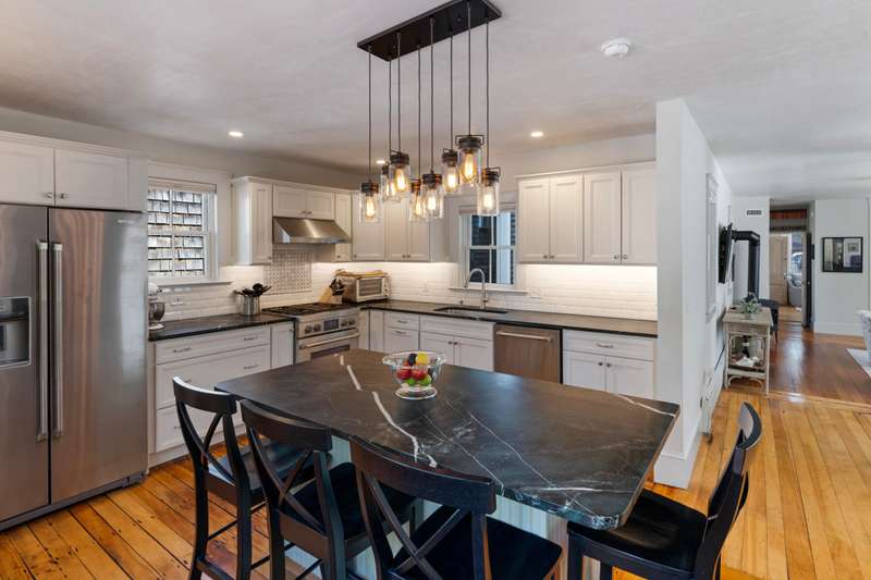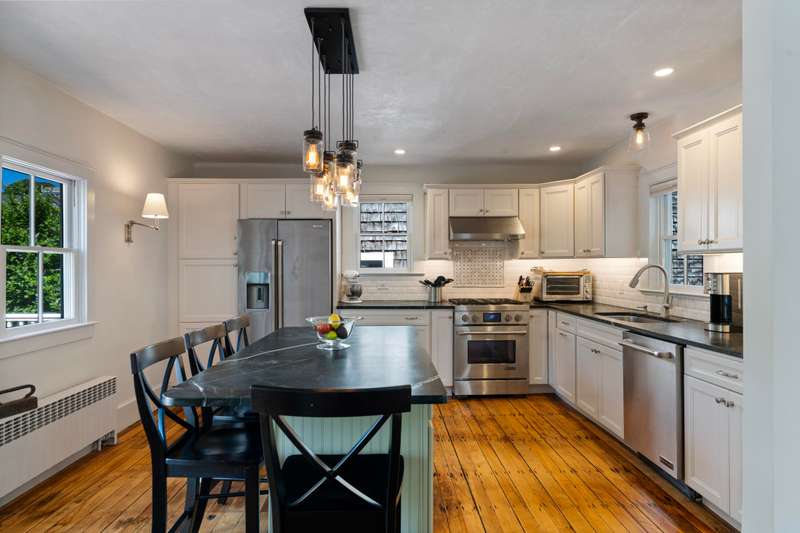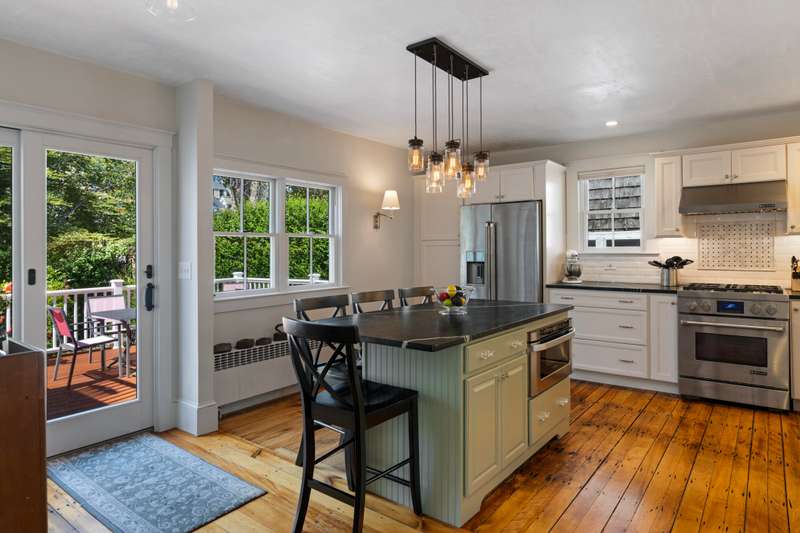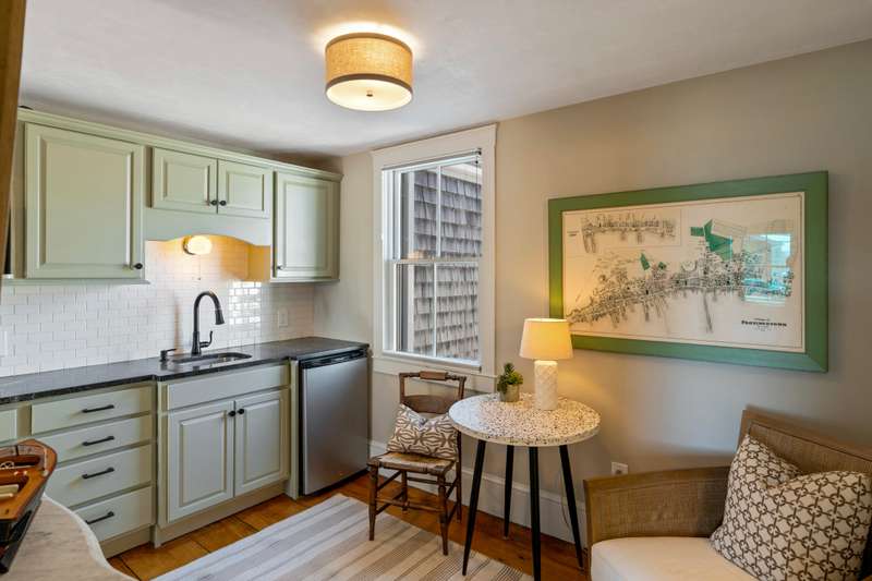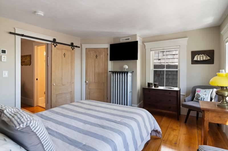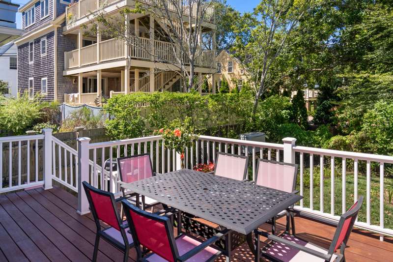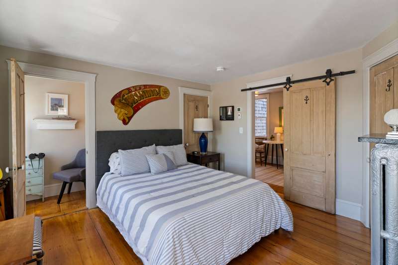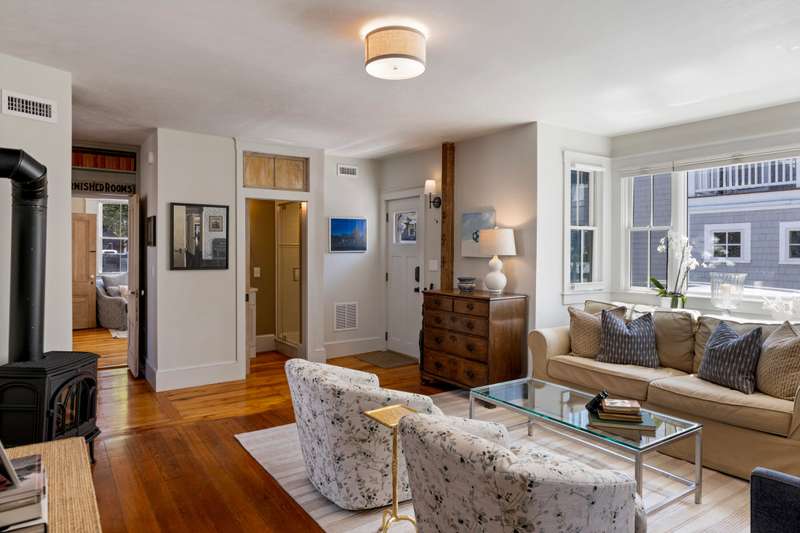 Make Provincetown your OWN with this stunningly beautiful condominium with a large front patio directly across from the Coast Guard Station! Located at the iconic bend of Commercial Street in the West End, this historic property was the beloved home of the Days Family for over a century. In 2015 it was meticulously converted into two spacious 3BR/3BA condominiums. This 1555sf home occupies the entire first floor and a portion of the second. The renovation retained many of the original details including hardwood flooring, interior doors and hardware, and the freshly restored antique doors facing Commercial Street. New plumbing, electrical, insulation, windows, mechanical systems, kitchen, and baths offer the comforts of modern living. The first floor features a spacious living room with a bay window and a gracious dining area, all open to the kitchen. The huge kitchen features soapstone countertops, stainless Jenn-Air appliances, and ample storage. A kitchen island provides additional s