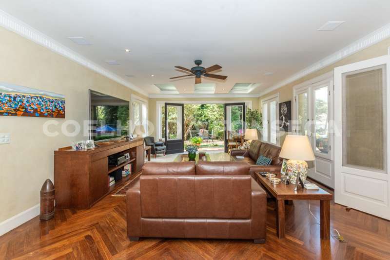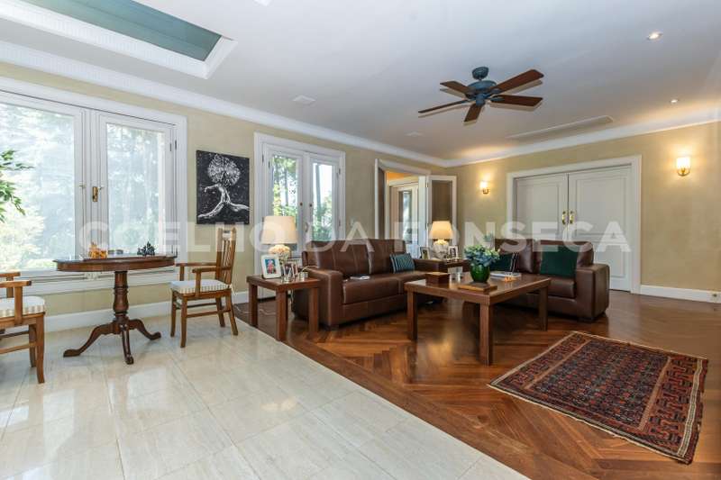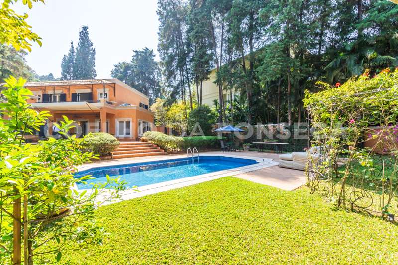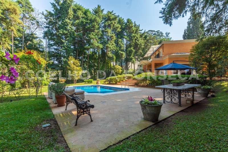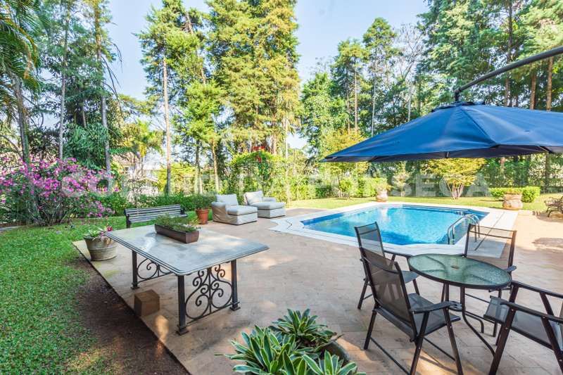 Charmosa residência que nos reporta a Bela Itália. Área externa com belíssimo jardim e piscina aquecida. Total privacidade e cercada de arvorés de toda espécie. Living maravilhoso e de muito bom gosto, Belo escritório com piso em sucupira. À esquerda, sala de jantar com passagem para o lavabo e cozinha. Amplo living em marmore espanho crema marfil, com lareira e mais uma ampla sala de TV, ambas com acesso à área externa da casa. São 04 suítes com closets Ornaria, sala de almoço, ampla cozinha e área de serviço com armários planejados. Dependência de empregados com 2 dormitórios e 1 banheiro.