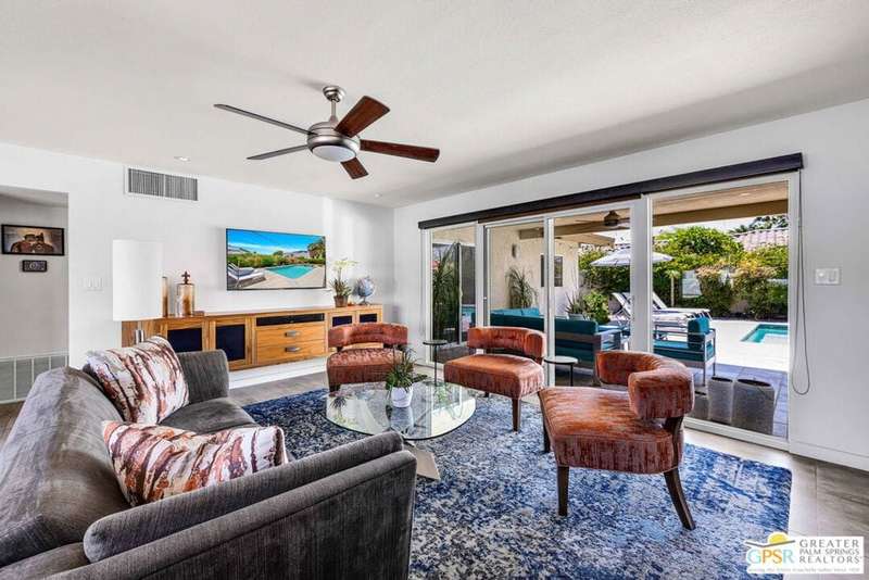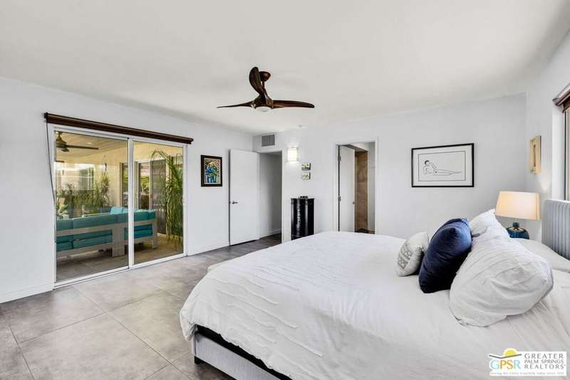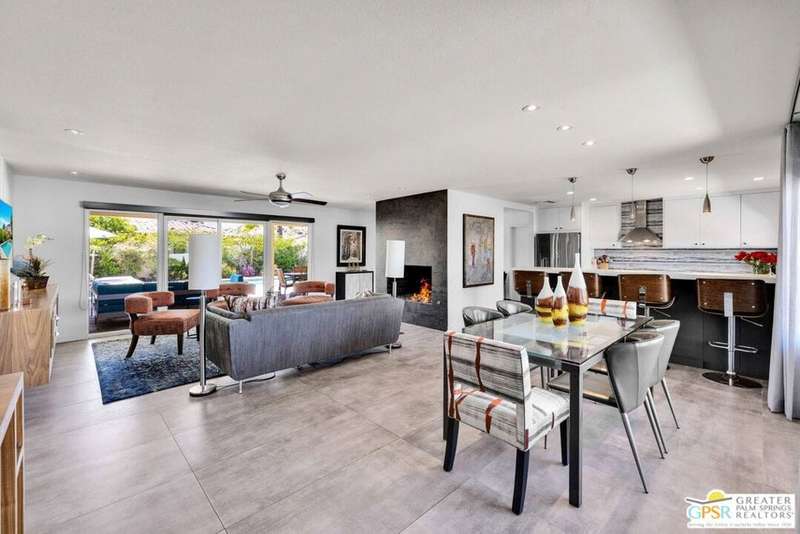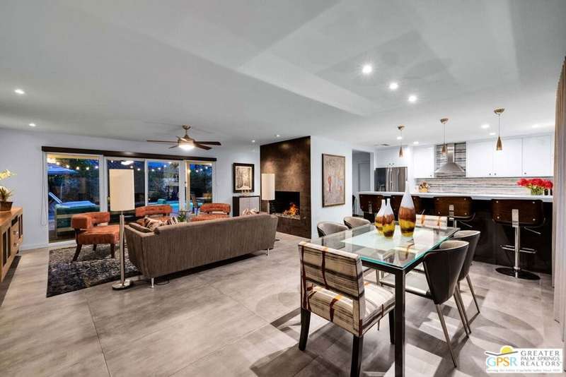 Your Palm Springs Dream Retreat in Movie Colony East: Tucked away in one of Palm Springs' most iconic and sought-after neighborhoods, Movie Colony East, this desert hideaway blends timeless charm with modern updates, creating the perfect escape for full-time living or weekend getaways. Set on an expansive 10,000+ sq. ft. lot, this updated 2-bedroom, 2-bathroom gem offers 1,630 sq. ft. of curated comfort and style. Inside, you'll find a thoughtful blend of materials; porcelain tile floors flow throughout the main living areas, while the bathrooms are dressed in elegant travertine tile. The heart of the home, a fully updated kitchen, features Quartz countertops, sleek custom cabinetry, and a statement backsplash, all anchored by premium appliances, including a Bosch dishwasher and GE Profile fridge and stove. The primary suite is a true sanctuary, complete with a generous walk-in closet and a flex space perfect for a home office, reading nook or yoga corner. Behind the scenes, smart upgrades ensure year-round comfort and efficiency: a newer HVAC system (2021), dual-pane windows and doors, a 200-amp electrical panel (2017), and 22 owned solar panels (installed in 2018) to keep your energy bills low and your impact light. Step outside and step into your own private resort-style backyard. Designed for sun-drenched days and starlit evenings, the outdoor space features a large pool, elevated spa, outdoor kitchen with built-in grill, sink, ice chest, and bar, plus a lush lawn, cozy fire pit, and plenty of space to entertain, unwind, or just soak in the mountain views. And there's more: This property doesn't just offer a beautiful lifestyle today, it holds exciting potential for tomorrow. Included with the sale are plans for an 800 sq. ft. expansion, envisioned to include a spacious family room, bar, dining area, laundry room, half bath, and a private studio casita with its own entrance, kitchenette, bathroom, and patio, ideal for guests, multigenerational living, or income-producing possibilities. Whether you're lounging poolside, sipping cocktails under the stars, or watching the sunset paint the San Jacinto Mountains, this home captures the essence of effortless desert living; stylish, serene, and ready for whatever you dream up next.