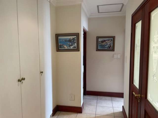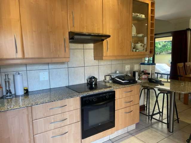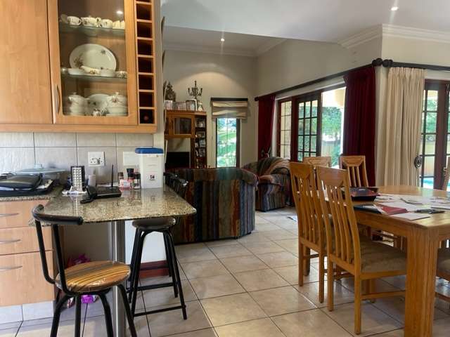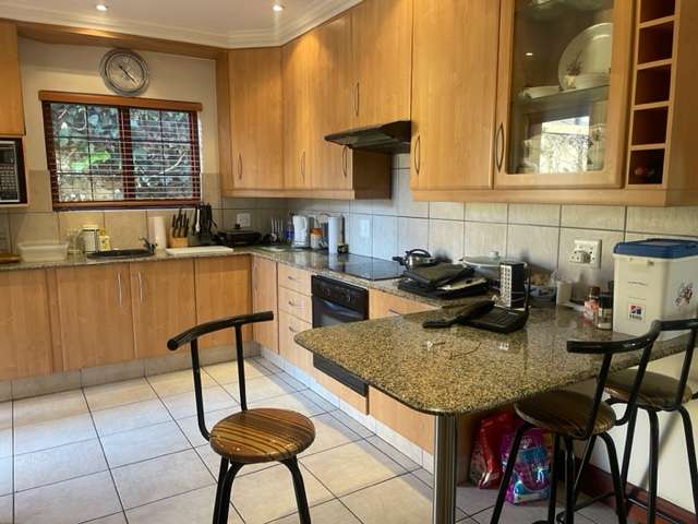 Priced to sell, lovely neat cluster with open plan living areas. Kitchen with oak cupboards & breakfast counter open to lounge & dining areas. Lounge opens to the entertainers patio looking onto the garden & large inviting pool. Separate formal lounge with fireplace, can be used as a study. Upstairs are 3 well appointed bedrooms, a big linen cupboard & Juliette balcony. Second bedroom has a Juliette balcony overlooking the garden. Main bedroom has lots of cupboards and a beautiful balcony with garden views. Security cameras plus 24/7 guard. Double tiled garage with storage cupboards, extra parking & staff accommodation.