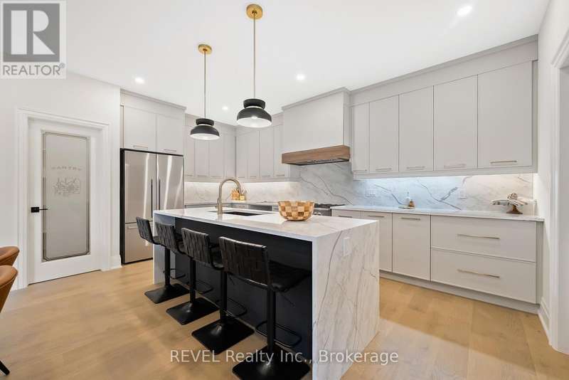 Welcome to 8 Accursi Street, a beautifully finished bungalow townhome in one of Pelhams most sought after neighbourhoods. Built by Centennial Homes, this freehold property features 2 bedrooms, 2 bathrooms, and a bright open concept layout perfect for everyday living. The main floor offers hardwood flooring, high ceilings, and a modern kitchen with quartz counters, custom cabinetry, walk in pantry, and premium Fisher & Paykel appliances. The spacious living area is accented with clean lines and a sleek glass railing. The primary bedroom includes a private ensuite and walk in closet, while the second bedroom offers flexibility for guests or a home office. The laundry room includes built in cabinets and a sink for added function. Outside you'll find a double garage, finished driveway, and in ground sprinkler system. Just steps to parks, golf, and local amenities, this is low maintenance living in a quiet, upscale community. Make this home yours (id:7434)