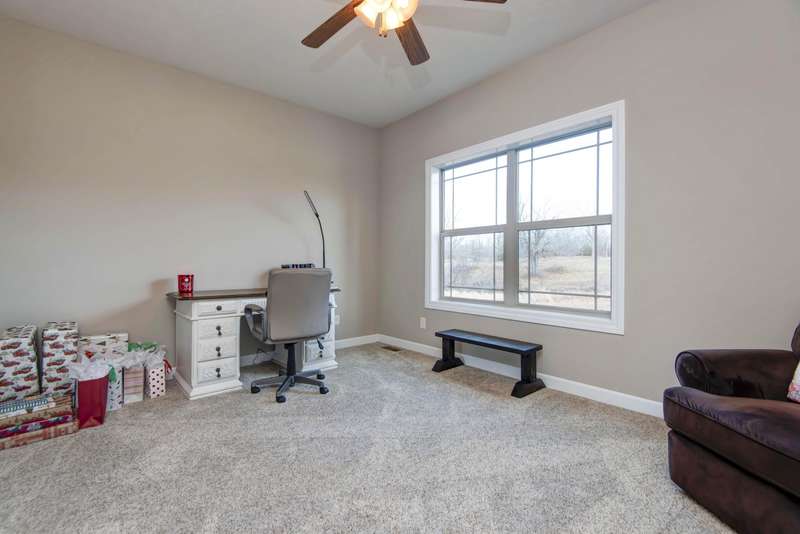 Quality craftsmanship, stunning views! This 5 Bedroom 2 full 1 half Bath, approx. 3,117 sq. ft. home is situated on 24.4 secluded acres and has so much to offer. Discover the charm and sophistication of this home that combines a beautifully designed layout inside with an enchanting outdoor space. This residence ensures that comfort is paired with functionality with an open floor plan that accentuates expansive views and fosters a welcoming atmosphere, ideal for both relaxation and entertaining. Step inside to find a Living Room that's the heart of the home, complete with exposed beams, built-in shelving, and a cozy gas fireplace. The adjoining Kitchen is a culinary enthusiast's delight, featuring a vast island for social cooking, a butler's area for added convenience, and a dedicated Eating Area for delightful dine-ins. The Master Bedroom is a true sanctuary, complete with stylish shiplap walls, a large walk-in closet with a built-in storm shelter, and an en-suite Bath that includes a walk-in shower and thoughtful storage options. 2 additional guest Bedrooms on the main level share a Bath and provide comfortable accommodations, perfectly suited for family or visitors. An additional Bedroom and half Bath rounds out this level. Upstairs, you will find a fantastic space that could be a 5th Bedroom or Bonus Room used for recreational pursuits or a quiet retreat. Don't miss the extra storage space in the attic area. Outdoor living is redefined here, with a covered patio ready for any season, a fire pit for starlit nights, and an exclusive camper site with electric hook-up. The property, mostly fenced, includes an electric gate at the entrance for both privacy and prestige. From quality construction of 2x6 walls and foam insulation in the walls & ceilings to thoughtfully designated spaces both inside and out, this home offers a perfect blend of luxury, comfort, and security. Ample living spaces and the great outdoors combine for a lifestyle of ease & elegance!