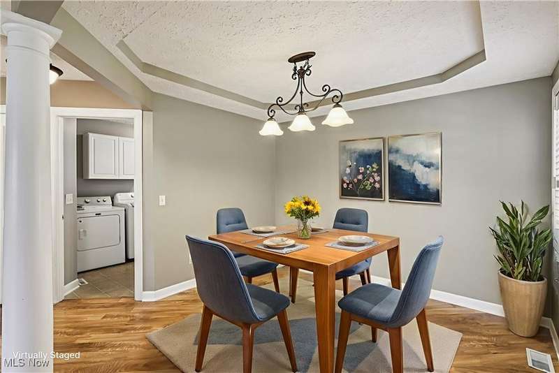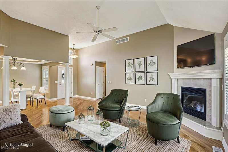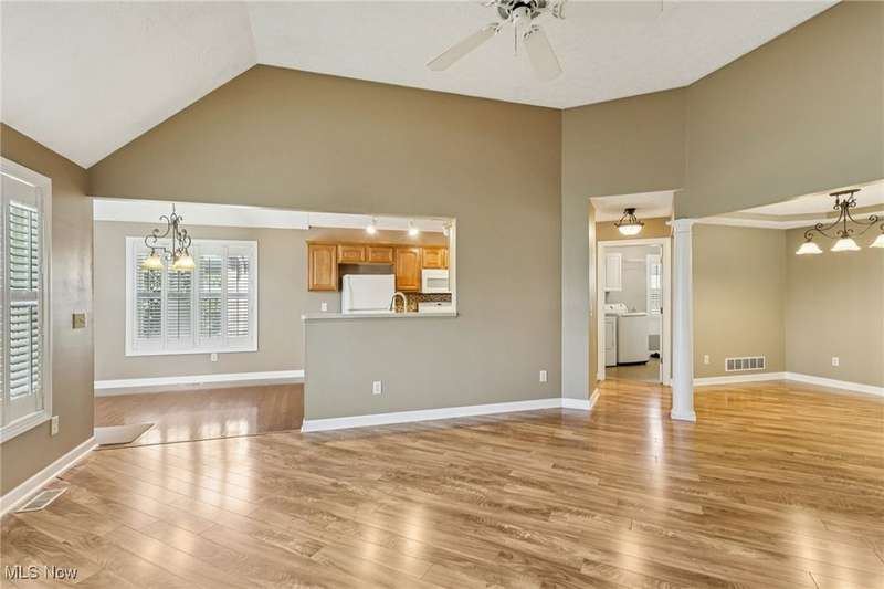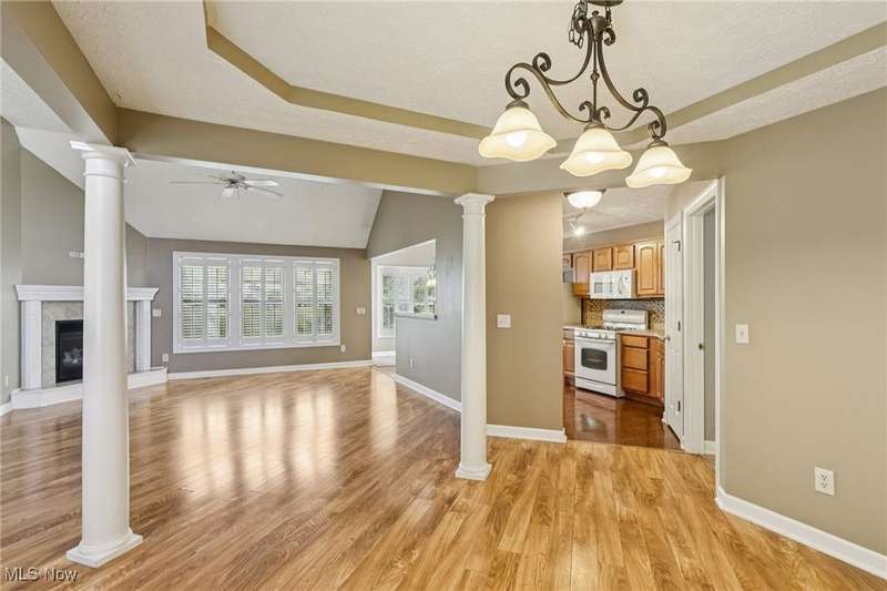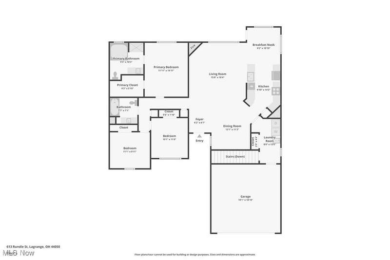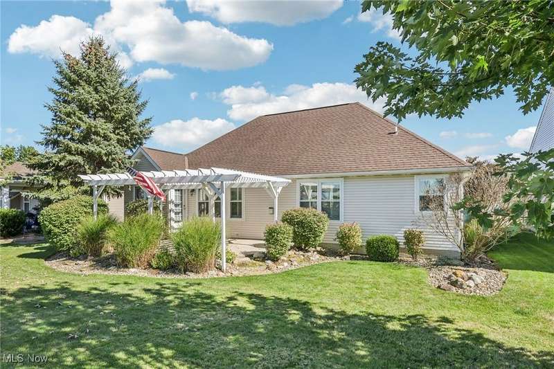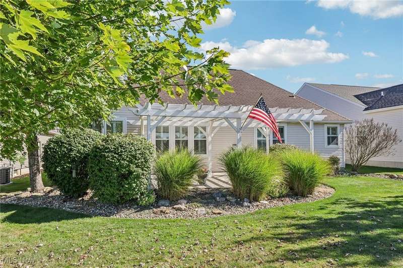 Welcome to 613 Rundle St, LaGrange ? a former model home located on the 12th hole of Grey Hawk Golf Club in Durham Ridge! This beautiful ranch-style residence offers an inviting open floor plan with a cathedral ceiling in the great room. Three bedrooms and 2 full baths with plumbing for a third full bath in the basement. The kitchen features maple cabinetry, a stylish tile backsplash, and an adjoining dining area that flows seamlessly into the great room with a cozy gas fireplace. High ceiling and plantation blinds create an elegant, airy feel in the dining room. Convenience meets function with a large first-floor laundry room w/utility tub and coat closet. The huge, unfinished basement includes a rough-in for a third full bath?offering endless possibilities for future living space. Step outside to enjoy the concrete patio with a pergola, the perfect spot to relax and take in the scenic views of the golf course. This home combines comfort, style, and a prime location?perfect for both everyday living and entertaining. Qualified buyers are welcome by appointment. Why wait to build your dream home when this one is move-in ready for you!