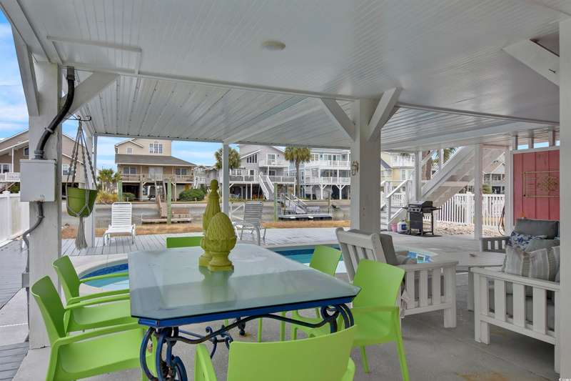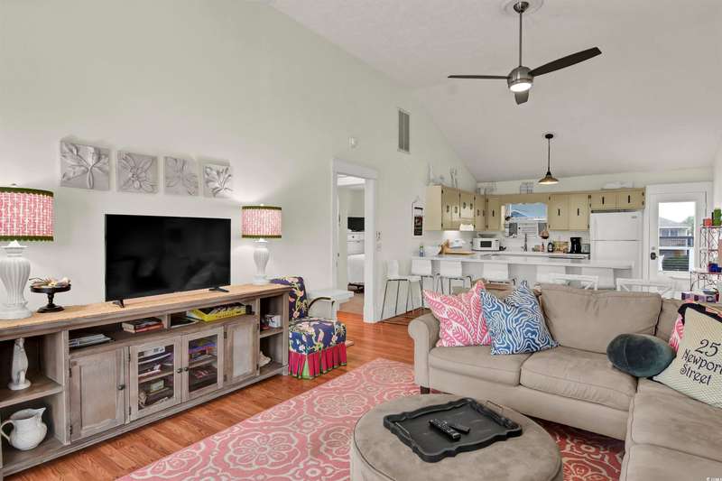 Welcome to 25 Newport Street, a breathtaking coastal retreat perfectly situated on a serene canal lot in the heart of Ocean Isle Beach. This home offers direct access to the Intracoastal Waterway, making it a haven for water enthusiasts and those seeking tranquility by the sea. As you arrive, the charming front deck, framed with freshly painted rails, invites you to relax and soak in the ocean breeze. Vibrant, plush seating and cheerful fabrics enhance the outdoor ambiance, setting the tone for endless seaside moments. Step inside and discover a thoughtfully designed home that seamlessly blends coastal elegance with inviting comfort. The interior boasts custom-designed fabrics, beautifully painted kitchen countertops, and a charming Paula Deen dresser, embodying Southern hospitality. Natural light streams through the glass doors, illuminating the open floor plan and complementing the airy coastal palette. With four tastefully decorated bedrooms and two well-appointed bathrooms, this home is ready to welcome you and your guests. The oversized upper deck offers panoramic views and plenty of space for entertaining, while downstairs, the freshly painted textured stucco flooring leads to a functional laundry area and ample storage. Outdoors, the yard showcases fresh rock accents, and the new dock is ready for your canoes or a sunset gathering by the water. This property includes transferable flood insurance and comes furnished as seen (excluding personal items). With all these features, 25 Newport Street isnt just a homeits a lifestyle waiting for you to embrace.
