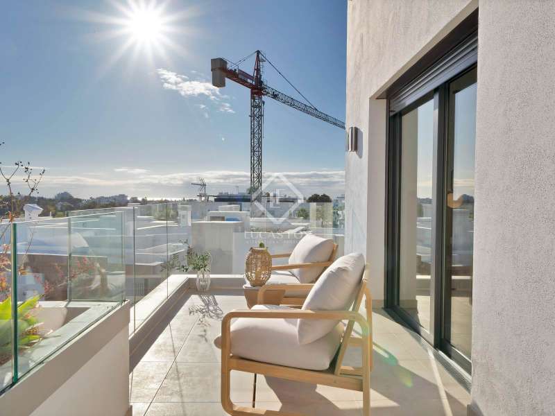 Discover the brand-new luxury penthouse in Atalaya Emotion, Estepona, available through Lucas Fox International Properties. This stunning 3-bedroom penthouse features a private terrace and solarium with breathtaking panoramic views of the surrounding landscape. Designed for comfort and elegance, this modern home boasts high-end finishes, an open-plan layout, and premium amenities, making it an exceptional investment or dream home on the Costa del Sol. Ideally located, this penthouse is close to golf courses, the port, shops, beaches, Estepona town, and top schools, offering unmatched convenience and a luxurious Mediterranean lifestyle. Its southeast orientation ensures abundant natural light throughout the day, while nearby transport links provide easy access to Marbella, Puerto Banús, and beyond. Exclusive features and amenities include a spacious covered terrace and private solarium for outdoor relaxation, fitted wardrobes, and satellite TV for modern living. The property also offers secure underground parking and private parking spaces, along with communal swimming pools, jacuzzis, and lush landscaped gardens. For those seeking an active lifestyle, there is a fully equipped gym, a yoga area, and a pétanque court, as well as a children's pool and play area for family-friendly living. This luxury penthouse in Estepona, available through Lucas Fox International Properties, is a rare opportunity to experience high-end living with exceptional comfort, convenience, and investment potential. Please contact us today to arrange a viewing.
