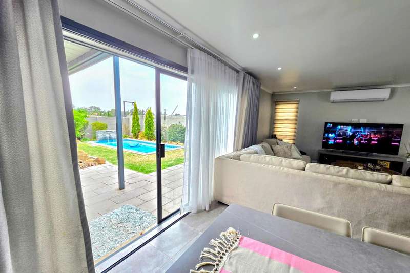 Modern 3 Bedroom Retreat in Secure Rynfield Estate, Benoni Nestled in a sought-after, pet-friendly Rynfield complex, this 150 m??, 3 bedroom, 2 bathroom, double carport home on a 380 m?? stand offers contemporary living with privacy and security. Perfect for families or professionals, it blends open-plan spaces, modern finishes, and a private garden with pool, all near schools, amenities, and major routes. Living Space: Open-plan kitchen, dining, and TV lounge with office cubicle (wooden divider). Kitchen: Central island, gas cooker, Caesarstone countertops, double fridge space, separate pantry, laundry, scullery. Master Suite: Built-in dresser, sliding wardrobes, en-suite with ceiling-mounted shower, doors to garden. Additional Bedrooms: Two with built-in cupboards, shared bathroom with bath. Security: 24/7 guard, electric fencing, intercom, security gates, Clear-Vu burglar bars. Outdoor Area: Covered patio, garden, swimming pool. Complex Amenities: Communal party venue, kids?ÇÖ jungle gym, fire pit boma. Practical Features: Gas geyser, prepaid electricity, double carport (30 m??). Costs: Rates ~R1,200/month, levies ~R3,500/month. Location: Close to major routes, schools, medical facilities, amenities. Call Steven?áto?áview?átoday!