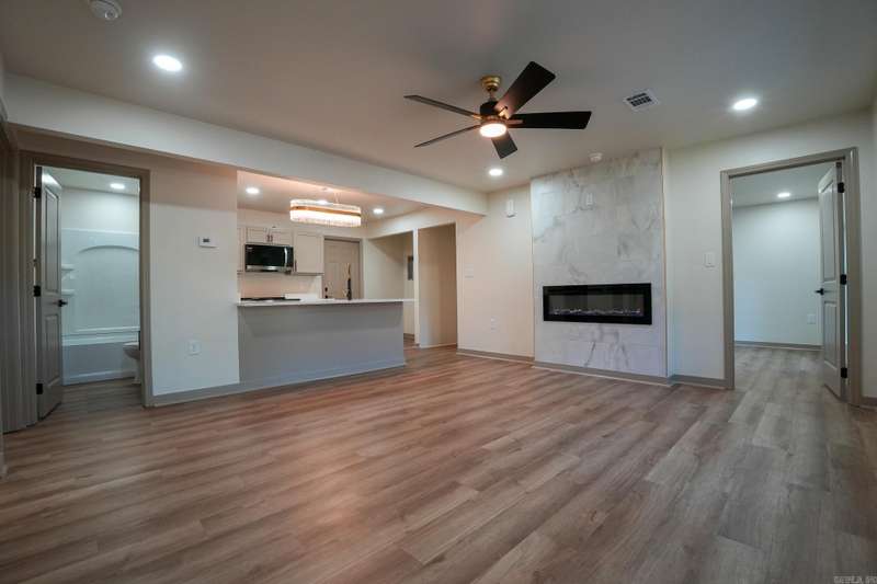 Beautifully remodeled white brick home in a prime West Little Rock location! Originally a 2 bed/1 bath, now a spacious 3 bed/2 bath with stylish modern updates throughout. Enjoy quartz countertops, a new roof, HVAC, appliances, concrete driveway, and sleek finishes. The living area features stunning floor-to-ceiling porcelain work on the fireplace, adding a modern, luxurious touch. Closets include built-in shelving for extra storage. Conveniently located off Cantrell Road near restaurants, shopping, and Chenal amenities. Move-in ready and perfect for first-time home buyers!