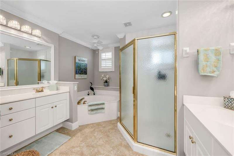 Coastal Calm Meets Effortless Living in The Vineyards! This highly desirable, rarely available, well-maintained first-floor end unit in Vintage Reserve could be yours! Offering 2+den, abundant natural sunlight, generous living space, and a gorgeous long lake view with fountain and sunset vistas, this home captures the essence of relaxed Naples living. Step inside and feel the calm of the coastal-inspired color scheme-neutral flooring, soft tones, and tranquil finishes that create a sense of serenity throughout. The spacious great room flows effortlessly to the sunny, oversized screened lanai, the perfect place to unwind, entertain, or simply take in peaceful lake and sunset views. For added peace of mind, this home is equipped with electric hurricane shutters for effortless storm protection. The generous primary suite is a private retreat, complete with two closets, dual vanities, and soothing views to start and end your day. Guests will appreciate the separate suite with its own full bath, offering both comfort and privacy. Thoughtful details include two linen closets, under-stair storage, newer appliances and systems, and a 2-car garage-all designed for easy, effortless living. Outside your door, indulge in the amenities of Vintage Reserve, including a renovated clubhouse, heated community pool and spa, and lush, beautifully maintained grounds. Vineyards Country Club offers 36 holes of championship golf, two pro shops, lighted Har-Tru tennis courts and pickleball courts, resort and lap pools, wellness center and spa, as well as 38 sparkling lakes, and 32 acres of parks. Families and residents appreciate the miles of bike and walking paths connecting to Vineyards Elementary School and Crossroads Market Center, while Ave Maria University's School of Law and the world-renowned Physicians Regional Medical Center bring education and healthcare right into the community and all located in the heart of North Naples, just minutes from world-class dining, shopping, and white-sand beaches. Discover a place where every day feels like a getaway-your relaxed Naples retreat awaits