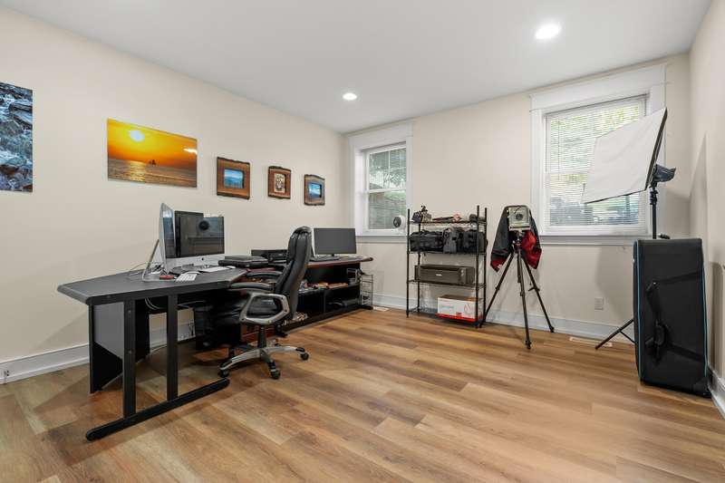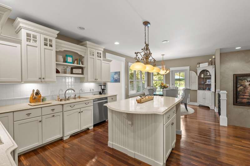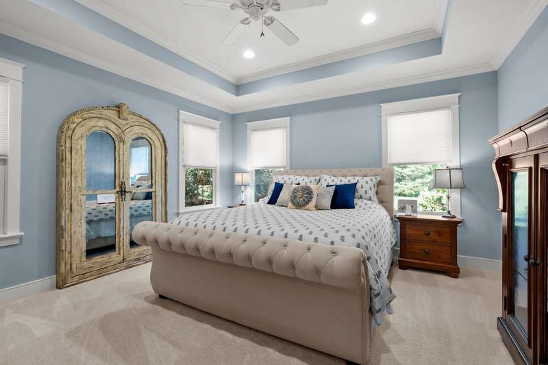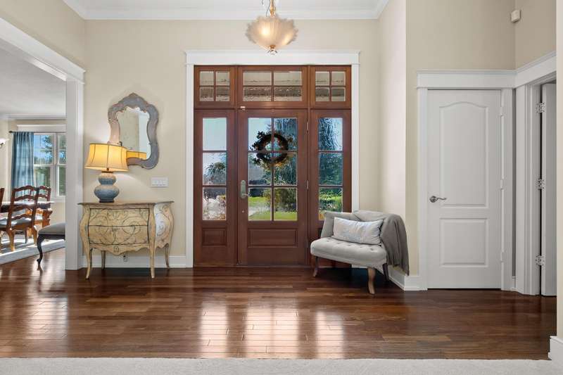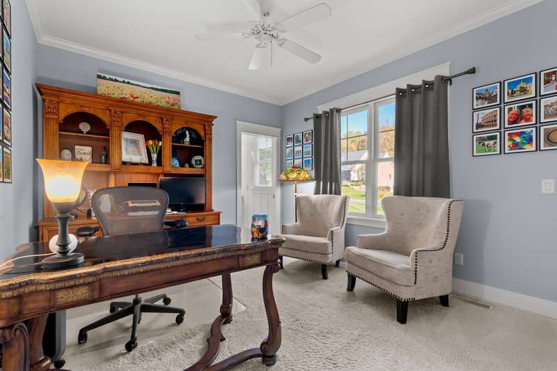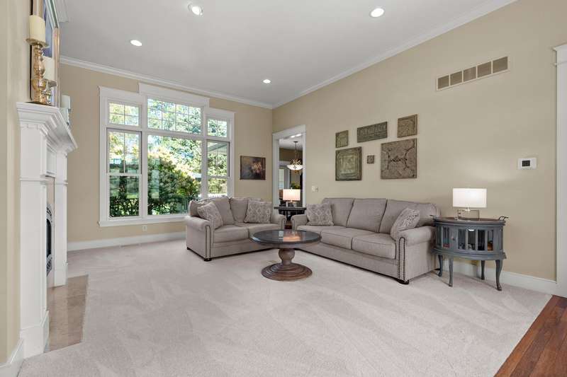 Welcome Home to style and flexible living. Step into this elegant former Parade of Homes People's Choice Award winner, thoughtfully designed for effortless main-floor living and exceptional craftsmanship throughout. With six spacious bedrooms, three on the main floor (one currently used as an office, and the other a cozy den), and three and a half baths, this custom home offers a perfect blend of luxury, comfort, and versatility - with plenty of room for the whole family and guests. Located in the highly desirable West Port Trails Subdivision, this home combines peaceful living with the convenience of nearby shopping, dining, and easy highway access. As you enter, you'll be greeted by the light-filled living room with soaring ceilings, a gas fireplace, and new carpet - a perfect gathering space for relaxing or entertaining. The homes quality shines through in every detail, from the walnut-stained hardwood floors in the foyer, dining room and kitchen, to the imported Italian fixtures, crown moldings, wainscoting, and custom trim work. The gourmet kitchen is a cook's dream, featuring Grabill custom cabinetry, quartz counter tops, newer stainless steel appliances, a spacious dining area, and a walk-in pantry. Enjoy the split bedroom layout, offering comfort and privacy for everyone. The primary suite is a true retreat with a tray ceiling, a walk-in closet, and a spa-like bath compete with soaking tub and separate shower. On the opposite side of the home, you'll find two additional bedrooms with a shared Jack-and Jill bath, a laundry room with a folding area and built-in ironing bord, a half bath, and a mudroom with four lockers/cubbies and an extra closet. The lower level expands your living and working possibilities, offering three more bedrooms (one currently serving as a home office), another Jack-and-Jill bath, a game and bar area, and a family room with custom built-ins and daylight windows - perfect for hosting or unwinding. The oversized, insulated three-car garage provides exceptional storage, with a staircase leading to the lower level, convenient for service providers or storing seasonal furniture. outside, your half-acre fenced backyard features a composite deck, stone firepit area, and beautifully landscaped surroundings. This home truly offers the best of both worlds - deluxe main-floor living with flexible spaces that adapt to your needs!