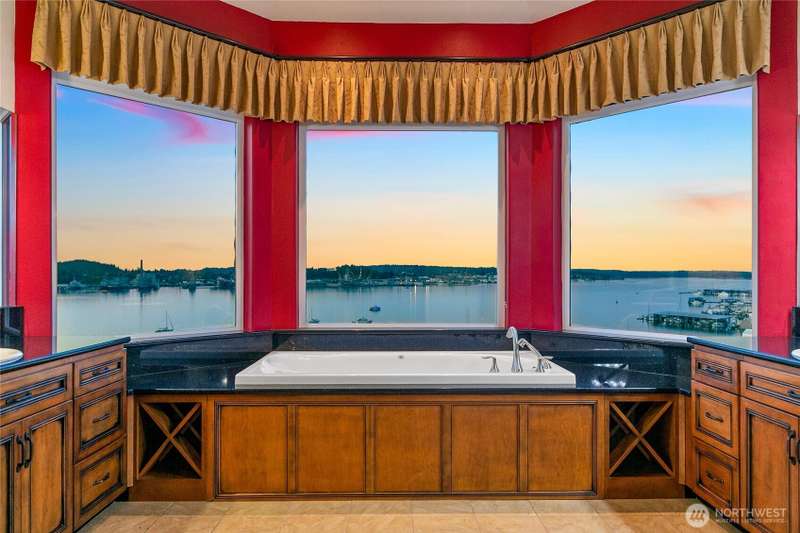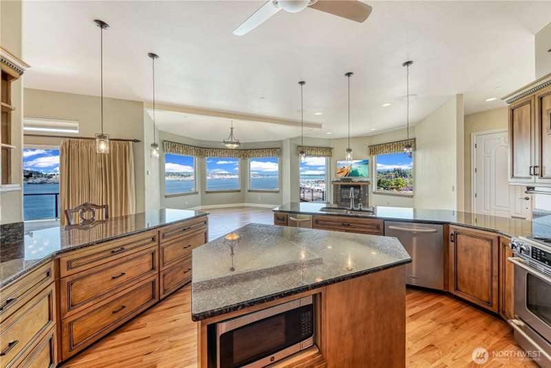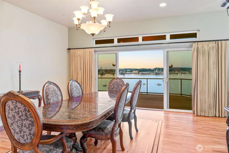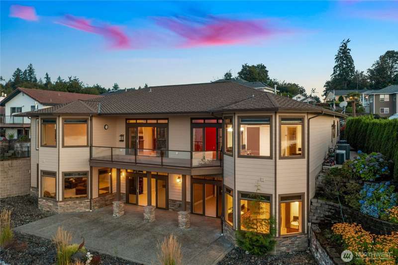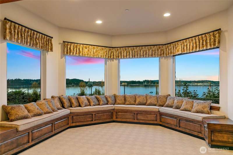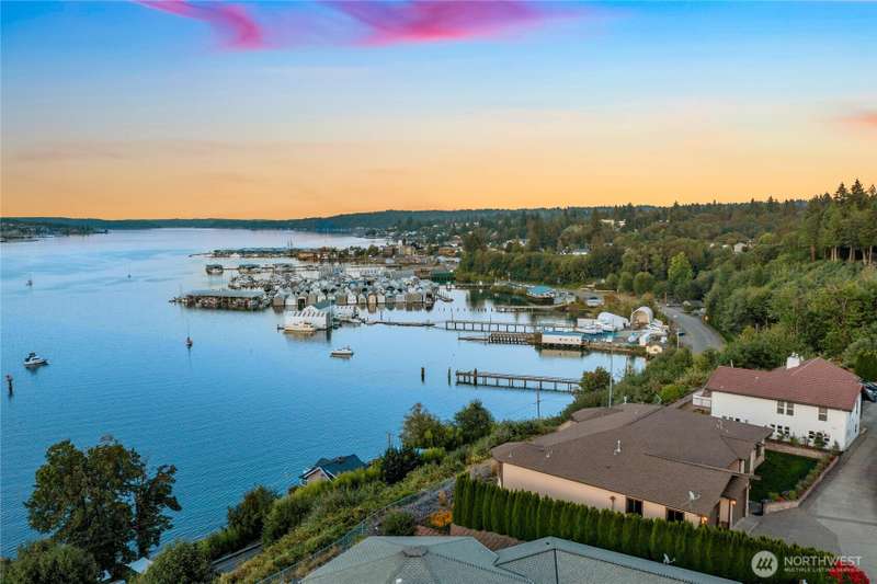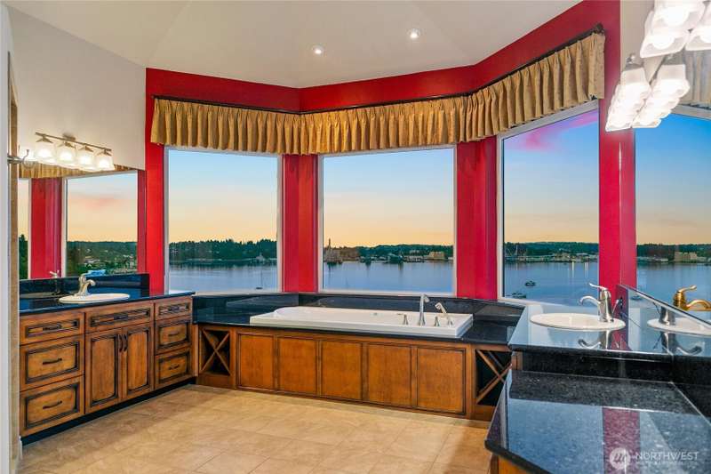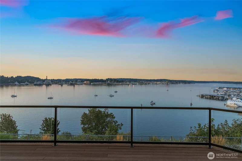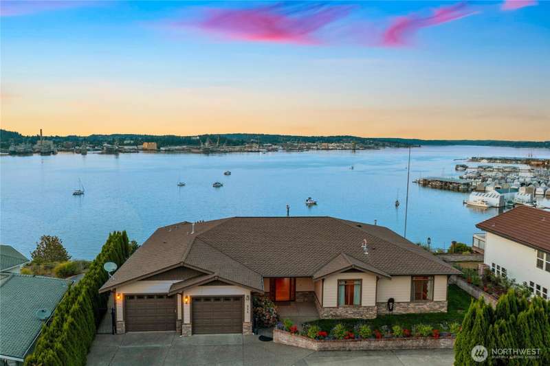 Experience unparalleled luxury in this beautiful view home overlooking Sinclair Inlet. Unobstructed panoramic views of the Puget Sound Naval Shipyard and breathtaking water views fill every room of this 5360sqft estate. Step inside the high ceiling grand entry and bast in the abundant natural lighting. Hand laid hardwood floors walk you throughout this exquisite home, with gourmet chef's kitchen, two master suites, and a leisure area with full service wet bar. This main-level-living home hosts 4 full bedrooms and 4 bathrooms. Additionally, the walkout lower-level leads to an expansive private patio. This home is perfectly designed for both sophisticated entertaining and serene relaxation. Experience this must view property today!
