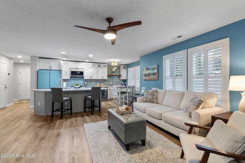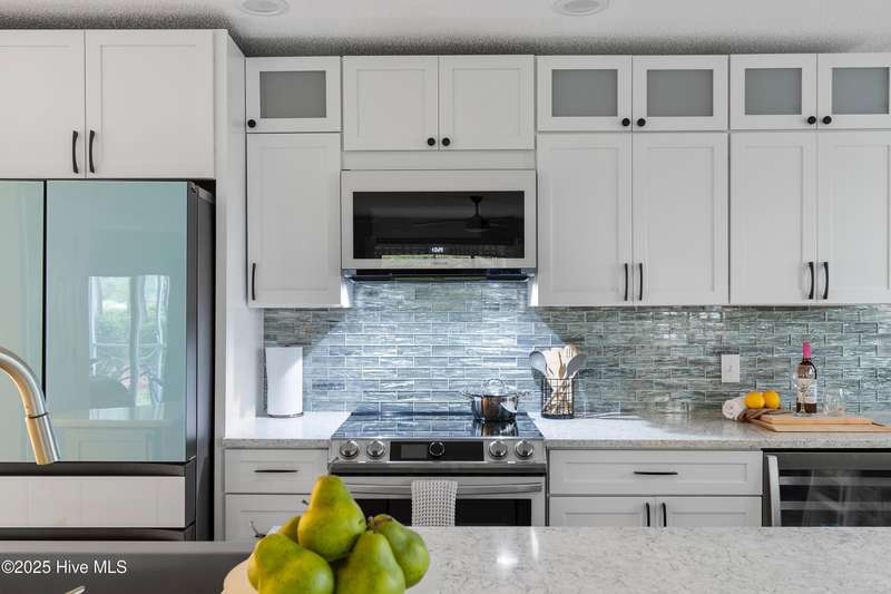 Welcome to this stunning fully furnished 1st floor condo in sought after St James Plantation. More than 60k in updates were added in 2023 to remodel the kitchen, baths and more. More you ask? Yes, new vinyl plank flooring, plantation shutters throughout, paint and electric fireplace with shiplap surround with blower to keep you cozy and warm when you need it were added as well! The kitchen remodel included solid maple, white cabinetry w/frosted glass upper cabinets, extended quartz countertops (counter height island), glass tile backsplash, composite sink, upgraded Samsung appliances with easy to clean, interchangeable glass panels on refrigerator & dishwasher, dual zone wine refrigerator and brass faucet w/soap dispenser. Bathroom remodels included flooring, vanity/sinks, fan lights and toilets. Other updates include tankless water heater, new washer/dryer, thermostats, Anderson screen door, and ceiling fans! You won't find a more beautifully updated condo in St. James and on the highly sought after 1st floor. No carrying heavy furniture, groceries, and luggage up flights of stairs. Enjoy mornings and evening on your screened porch with additional access from the primary bedroom and a short distance to the Club Villas private pool. As a resident of St. James, you'll enjoy four gated entrances, a private beach club with gated parking, showers and a pool, a full-service marina, Beacon 315 Restaurant and Tiki Bar, The Apothecary Boutique Pharmacy, and miles of parks and trails. St. James Plantation offers access to enjoy 81 holes of championship golf, five restaurants, indoor and outdoor pools, tennis, pickleball, croquet, and three state-of-the-art fitness centers. Take time to relax and explore the nearby historic towns of Southport and Wilmington. Enjoy maintenance free living and start your new lifestyle today!