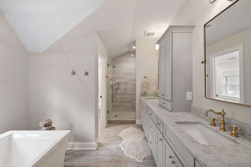 This beautifully renovated colonial, rebuilt in 2019, offers a perfect blend of classic charm and modern luxury in a highly sought-after neighborhood. Live the dream. Seamless Open Concept: The heart of this home is the expansive kitchen, breakfast nook, & family room combination, bathed in natural light and anchored by a cozy fireplace. Perfect for both casual living & grand entertaining, this space boasts a center island, ideal for gatherings. A dedicated service pantry adds convenience and elegance to your entertaining endeavors. Classic & Sophisticated: A traditional living room, also featuring a fireplace, offers a welcoming space for relaxation, while the formal dining room sets the stage for memorable meals. Work & Rest in Style: A main-floor office with a vaulted ceiling provides a private and inspiring workspace. Unwind in the tranquil and luxurious owner's suite, complete with a vaulted ceiling, a spacious ensuite bathroom with a soaking tub, and a generous walk-in closet. Fa