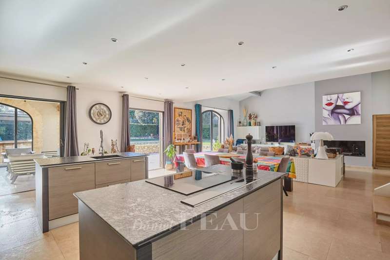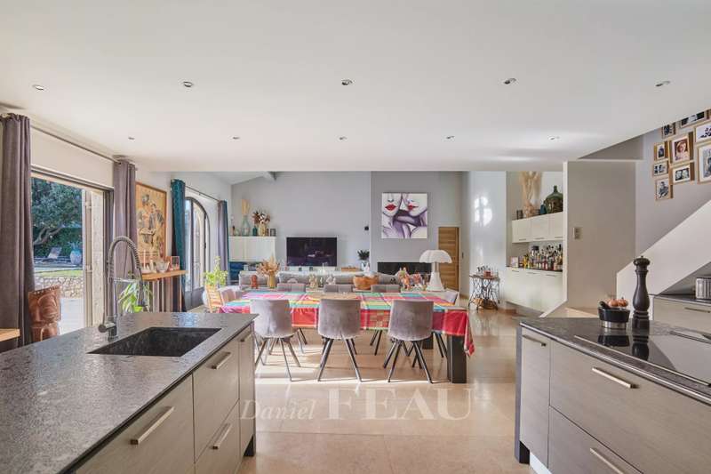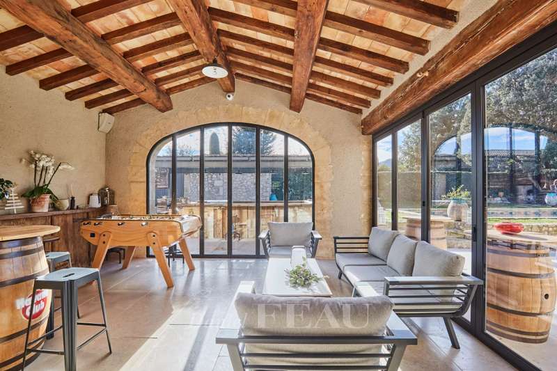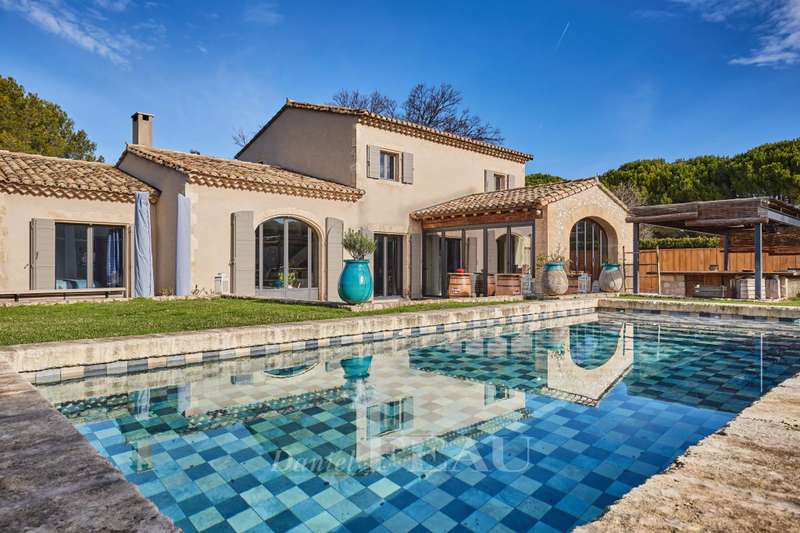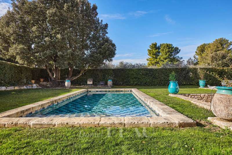 This property built in 2012 with old materials is located in a peaceful residential neighbourhood near the centre of Eygalières. Set in over 1000 sqm of landscaped grounds, it offers 212 sqm of living space including a spacious living/reception room with a fireplace, a bright conservatory with wide patio windows enjoying an open view of the garden, a dining room, an equipped kitchen, a pantry, a utility room, and a master suite with a bathroom and dressing room. Upstairs are three bedrooms sharing a shower room. With a 9x4 metre swimming pool, a fully equipped summer kitchen with a barbeque, a plancha and a fridge, a boules pitch, a wine cellar, and an over 40 sqm garage.