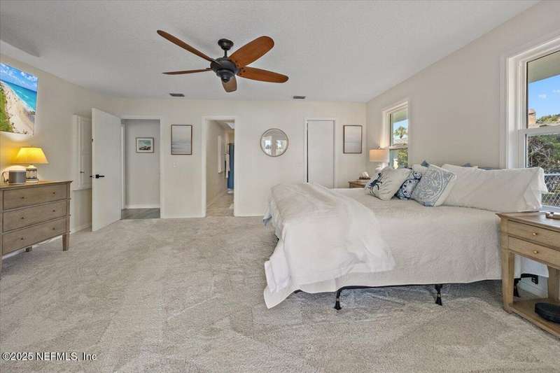 Welcome to your dream vacation rental in Ponte Vedra Beach! This stunning waterfront home located in Ponte Vedra proper with lagoon views offers the perfect retreat for up to 6 guests. With 3 spacious bedrooms and 3 full bathrooms, there is plenty of room for everyone to relax and unwind. The sleeping arrangements include a luxurious King bed, a comfortable Queen bed, two cozy Double beds, and a convenient murphy bed for extra guests. Inside, you'll find a fully equipped kitchen with modern stainless steel appliances including a dishwasher, microwave, coffee maker, and toaster. Central AC and ceiling fans keep the space cool and comfortable. Other amenities include a washer and dryer, iron, ironing board, and vacuum cleaner for your convenience. Step outside to enjoy the gorgeous views from the deck or screened porch. Take a dip in the pool, soak up the sun on the lawn area, or simply relax by the waterfront. High-speed internet is available for all your connectivity needs. This property comes fully furnished with linens provided, ensuring a comfortable stay. Utilities are included for your convenience. The 2-car garage offers ample parking space. For entertainment, there are four Smart TVs with cable, perfect for movie nights or catching up on your favorite shows. A desk area is available for any work that needs to be done during your stay. Don't miss the opportunity to experience the beauty of Ponte Vedra Beach from this incredible rental. Book now for your next getaway! Close to boutique shopping, restaurants, Mayo clinic and beach.