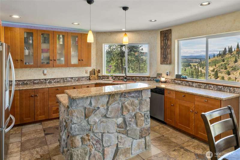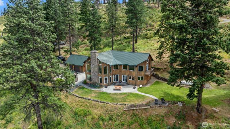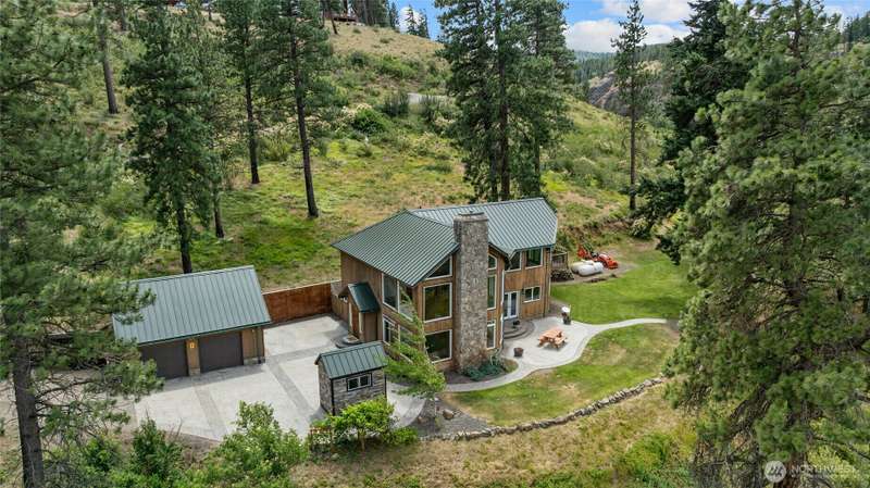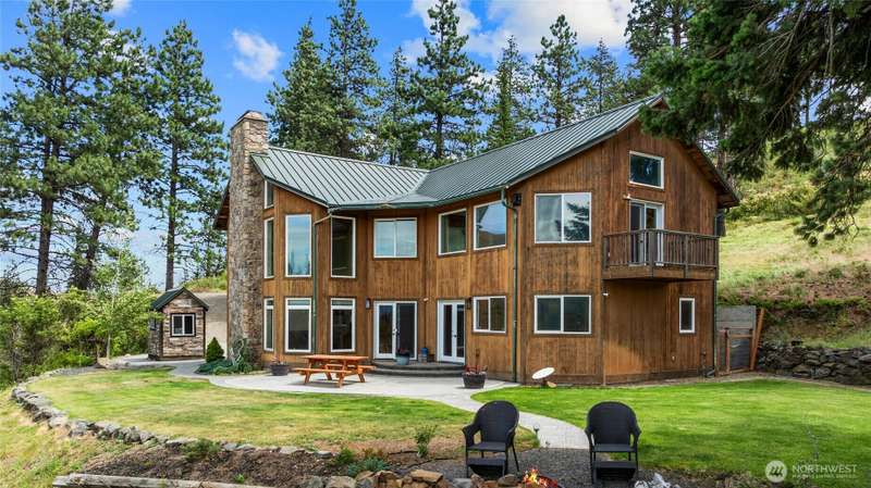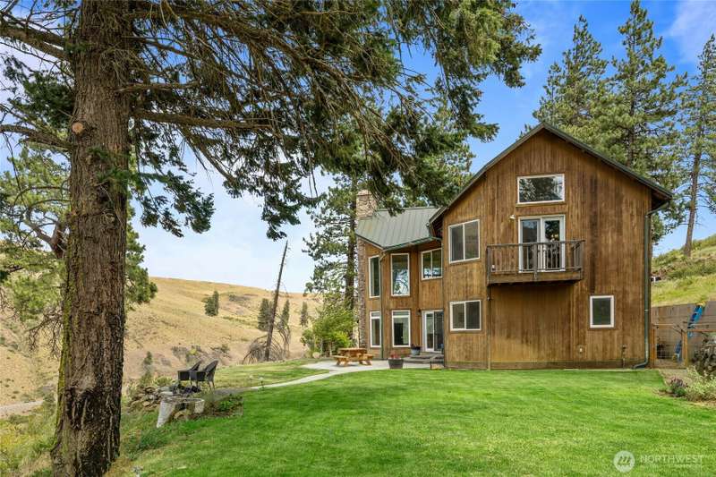 Welcome to your dream retreat! This stunning 14.92-acre property offers privacy, panoramic views of the Yakima River, + access to Palouse to Cascades Trail + world-class blue ribbon fly fishing-right out your back door. The custom-built cedar home boasts vaulted ceilings + breathtaking rock fireplace that’s perfect for cozy evenings. The gourmet kitchen features granite countertops, copper farmhouse sink + walk-in pantry. Cedar half-log stairs lead to a charming loft + spacious bedrooms. The primary suite includes balcony, fireplace, walk-in closet, + spa-inspired bathroom. Step outside to enjoy a stamped concrete patio, irrigated yard, fruit trees, + raised garden perfect for entertaining, or simply taking in the beautiful surroundings.