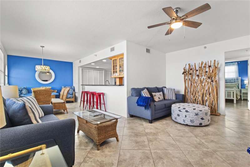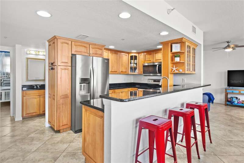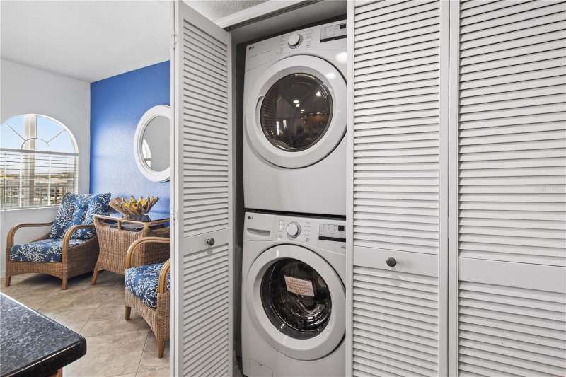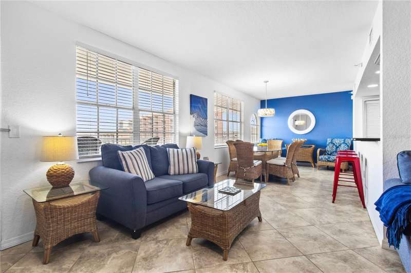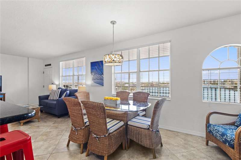 ***FULLY FURNISHED/TURNKEY CONDO WITH SHORT TERM RENTAL CAPABILITY AND UNOBSTRUCTED WATER VIEWS JUST 2 BLOCKS FROM THE BEACH!***UNIT DID NOT EXPERIENCE DAMAGE FROM THE MOST RECENT STORMS***This 5th floor condo’s updated coastal decor and amazing on-site amenities make it a gold mine as a short term income-producing investment or your own personal retreat! (Pre-booked future rentals can tranfser to the next lucky buyer or can be canceled.) PROJECTED ANNUAL INCOME IS $68k - $75k! (see attached flyer) This building is only one a few in the Clearwater Beach area that is allowed unlimited 7 night rentals. The condo interior spans from the front to the back of building making it light and bright. Experience unobstructed East-facing intra-coastal views with sunrises from kitchen, dining and living areas through the condo's large wall of windows. West sunset views can also be seen from both the master and guest bedroom windows. The living room has a pull-out couch making this home comfy enough to sleep 6 people. Modern color pallet throughout with ceramic tile flooring in the kitchen, baths and common areas and laminate flooring both bedrooms (no carpet!). Kitchen has newer stainless steel appliances, wood cabinets, granite counters and breakfast bar. Dining area opens up to kitchen and living area making entertaining a breeze. Both primary and guest bedrooms have a king bed, private closet and full bathroom just outside the bedroom door (one bedroom with a with walk-in shower and one with a tub/shower). Just off the kitchen, in laundry closet you’ll find a full sized washer and dryer. Covered/shared balcony area on the intra-coastal side provides access from elevator to all units and lots of space for lounging. Love the furnishings? They are included! The entire building was remodeled in 2007 but the seller has taken great care in maintaining its integrity and adding upgrades through years of ownership. Find peace of mind with the most recent building upgrades of a newer roof and brand new elevators! Most recent unit updates include some newer furnishings and decor, newer A/C (both units 2019), newer front door with keyless entry and newer microwave (2023), cooktop stove with oven (2023) and refrgerator (2023). Amazing amenities include use of heated, waterfront pool, sun deck, fishing dock, lounging bogota, grill area, paddle board/ kyack storage, bike racks, plenty of under building parking and uncovered parking spots available for resident and guest parking (1st come, 1st served). Boat slips can be rented or purchased from other owners when available. This property is located 2 blocks from one of Florida’s most pristine gulf front beaches! Fine dining, beach bars, lounges, boutiques, playgrounds and waterslides all within a few blocks from your front door. Monthly fee includes flood insurance, internet, cable tv, water, sewer, trash, external pest control and maintenance on the exterior / common areas. Make your appointment today!