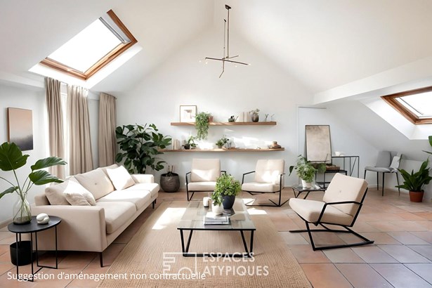 This bright property seduces from the moment you enter with its living room bathed in light, thanks to its four roof windows, and its total lack of view.