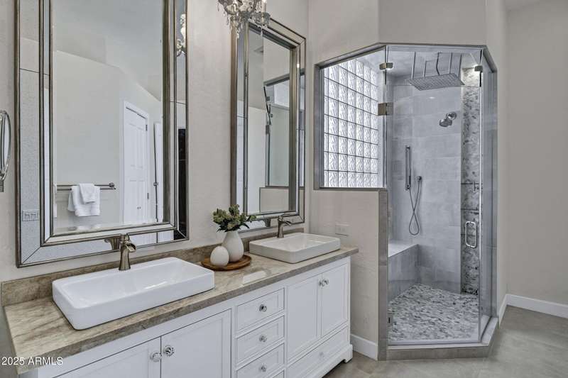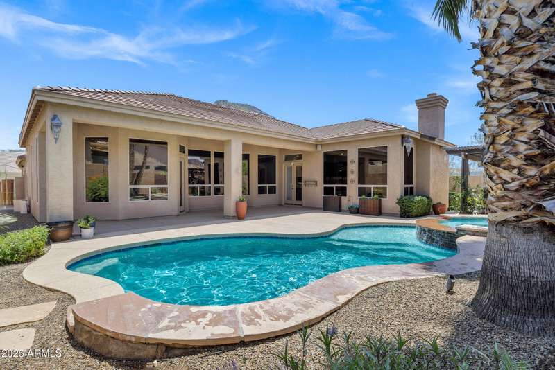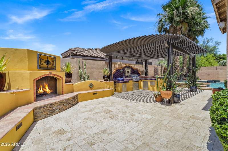 NEW ROOF and Freshly painted! Step into your own private resort in the heart of Scottsdale where luxury, comfort, and desert beauty collide. This seductive 4 bedroom, 3 bathroom masterpiece has been completely reimagined with style and sophistication in every detail. Ten foot ceilings draw you in, while rich wood and designer tile flooring flow effortlessly throughout the open, airy layout. At the center of it all, a jaw-dropping kitchen built to impress. Think oversized butcher block island, gleaming quartz countertops, a bold copper basin sink, and state of the art Thermador appliances, all perfectly placed to elevate your culinary game and your hosting vibe. The primary suite? Pure indulgence. Wake up to views of your private paradise and wind down in the spa like bathroom featuring a sleek quartz double vanity, a Mr. Steam aromatherapy shower that turns your routine into a ritual, and a massive walk-in closet dressed with a full custom system. Then there's the backyard, your own five star escape. Dive into the sparkling PebbleTec pool and spa, sip cocktails at your built in BBQ bar, or cozy up by the gas fireplace as the mountains glow in the distance and stars light up the night. This home doesn't just check boxes, it makes your heart race. This is the one. Welcome home.