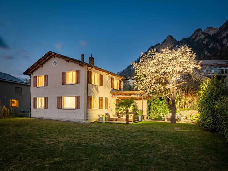 This detached residence in Chur is situated in one of the city's most sought-after residential areas. The Lürlibad neighborhood boasts quiet surroundings, ample sun throughout the day, and unobstructed views of the city and surrounding mountains. Enjoy a living experience that is a unique combination of tranquil idyll and proximity to the city. With 4.5 rooms and a well-conceived layout, the house is perfect for families or couples. The bright living and dining area imbues a pleasant ambience, complemented by a wood-burning stove that imparts a welcoming coziness. Generously sized rooms present flexible options in terms of use, while the covered seating area with its fabulous mountain view is an oasis of bliss for whiling away the time. Another advantage: The property can be adapted to meet specification, extended, or reconstructed to optimize build capacity. This allows for the creation of a contemporary home that highlights the benefits of this unique location in a decidedly impressive way. The ideal location, the cleverly configured layout, and the adaptable interiors make this house an exceptional prospect as your new home. The property: - 4.5-room detached house in one of the most sought-after locations - Approximately 120 square meters of living space - Approximately 53 square meters of additional usable space - 4 garage parking spaces and 6 utility rooms - Outstandingly beautiful views of the mountains and city - Unutilized development capacity available