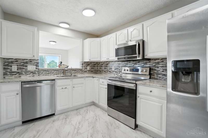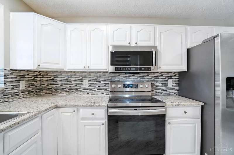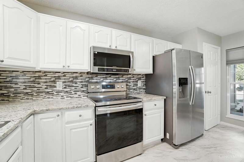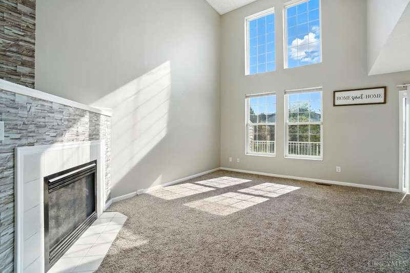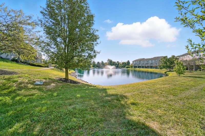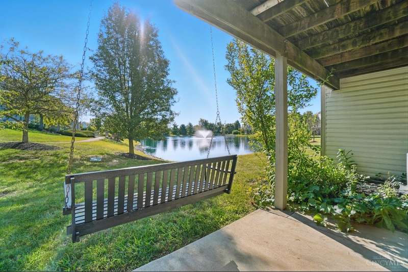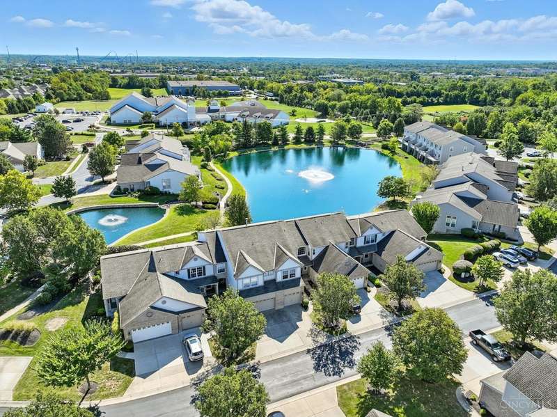 Stunning 3-story home in Mason's Village Lakes with serene pond views, Kings Island fireworks, and glowing sunrise exposure. Grand entrance with koi pond and rose garden. Enjoy a fully updated master bath with Jacuzzi, frameless sliding door, and new tile. Modern kitchen with granite countertops and white marble-look vinyl flooring. Smart home features include thermostat, doorbell, and garage opener. Cozy gas fireplace, elegant chandelier, and fresh neutral paint throughout. Walkout basement with bar, gym area, storage, and fruiting apple trees. Spacious garage fits van and motorcycles. Close to Mason schools, parks, and Kings Island. A/C 2022 and Furnace 2023.