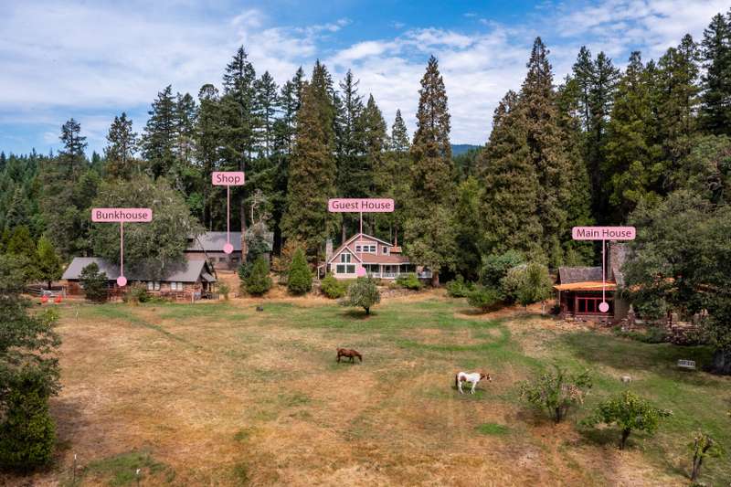 Nestled on over 95-acres, this exceptional rural estate offers a unique blend of elegance, privacy & versatility. Whether you're seeking a multi-generational estate w/multiple homes, a private retreat or an equestrian haven, this rare property combines natural beauty w/timeless amenities. Thoughtfully renovated the main residence showcases Craftsman design w/rich millwork & custom finishes. Beyond, are additional dwellings & spaces designed to generate income or house guests. A spacious 2nd home provides ideal accommodations for visitors or rental opportunities, while a charming bunkhouse offers lodging for short-term stays. For those drawn to the outdoors, dedicated camping areas & A-frame cabin create an inviting retreat where guests can experience the majestic surroundings. Equestrian enthusiasts will appreciate the horse barn, ideal for riding & training, w/pastures & open meadowland. Enjoy exploring the shining ponds, various walking & riding trails & serene mountain views.