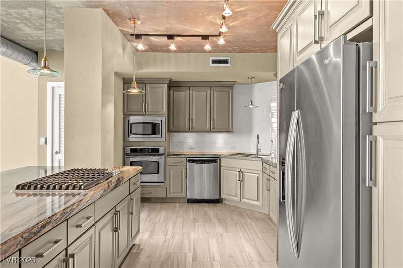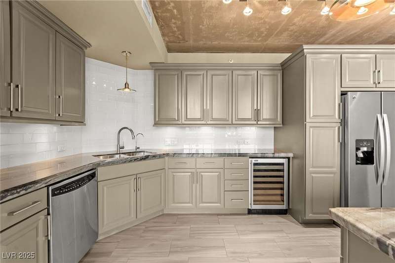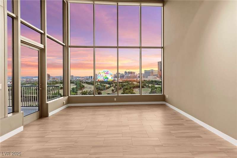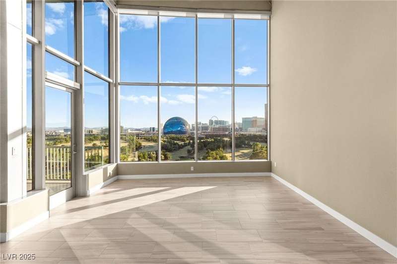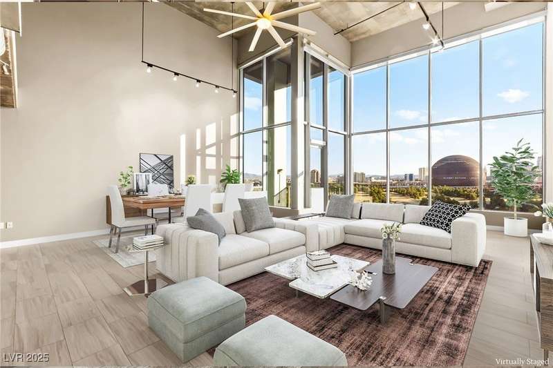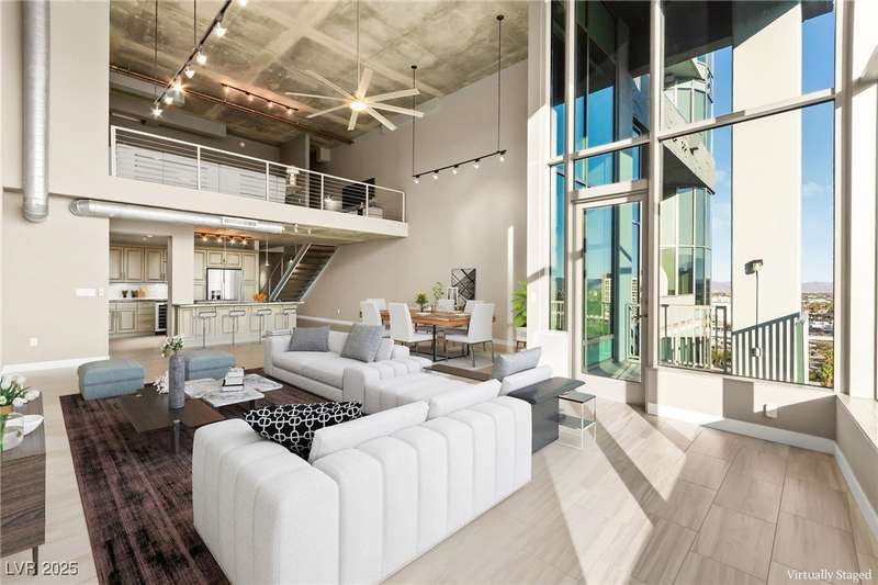 Experience luxury living in the Metropolis High Rise with this stunning 2-bedroom, 2.5-bathroom residence featuring a spacious loft that can function as a second living area or private office. Soaring 20-foot ceilings and expansive windows showcase panoramic views of the Strip, Wynn Golf Course, and the Sphere. Step out onto your private balcony to take in the incredible vistas. Both bedrooms have ensuite bathrooms on separate floors, offering privacy and comfort. Meticulously maintained by the original owner, this home was remodeled in 2018 and includes upgraded appliances and modern finishes throughout. Building features include assigned indoor parking spots on the first floor. Residents of The Metropolis enjoy a full-service lifestyle with a front desk, security, pool, hot tub, gym, putting green, and more—perfect for those seeking a sophisticated urban living experience with breathtaking views.