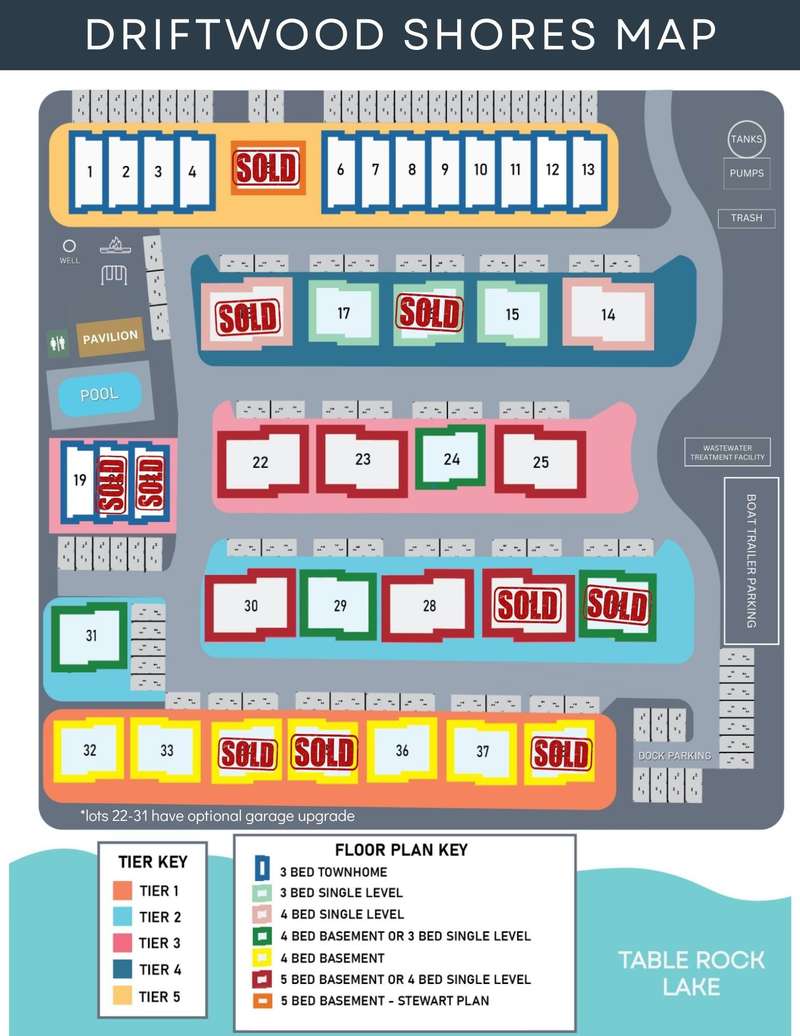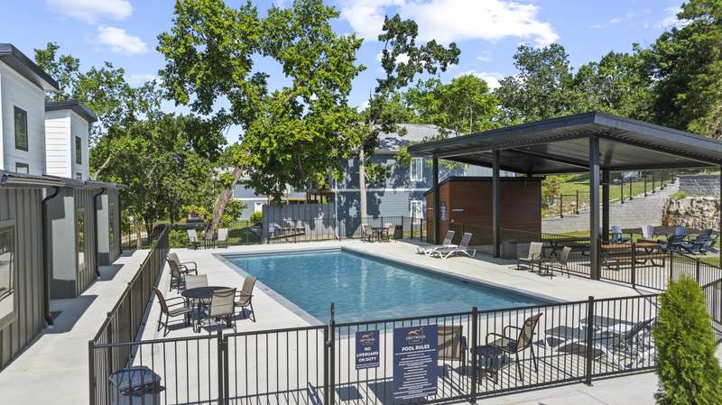 This brand home is just a short easy walk to the community's amenities, has a great lake view and is still just a gentle sloping walk to Table Rock Lake! The modern selections of this unit include granite countertops, luxury vinyl plank flooring, custom built cabinets, modern black lighting/plumbing fixtures, vaulted ceilings, open floor plan and large windows to not miss out on the picturesque views of Table Rock Lake. The exterior gives off some edgy vibes with their sharp, clean lines and bold colors. There's even an enormous walk-in crawl space to store all your lake toys! The community features a swimming pool, pavilion, space for yard games, a children's play area, a rock climbing wall, outdoor fireplace, and 2 boat docks with slips available for purchase! The best part of all is that your grounds maintenance is completely taken care of, all you have to do is come and enjoy the lake and all the Branson, Missouri area has to offer. These units are zoned for nightly rental so they are perfect for investment or just to help pay for that lake home you've always wanted!