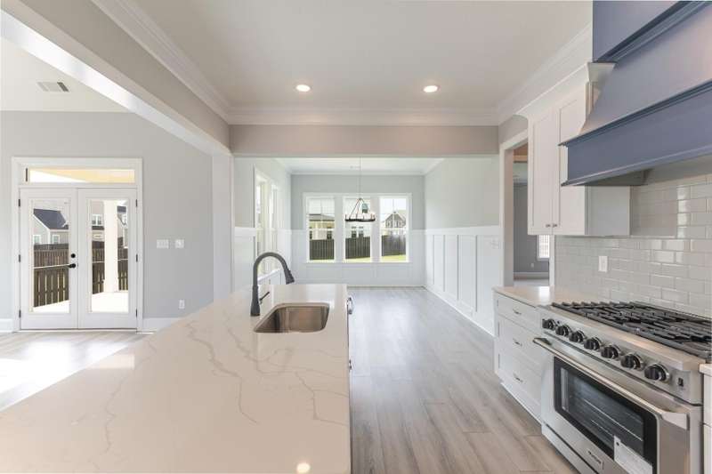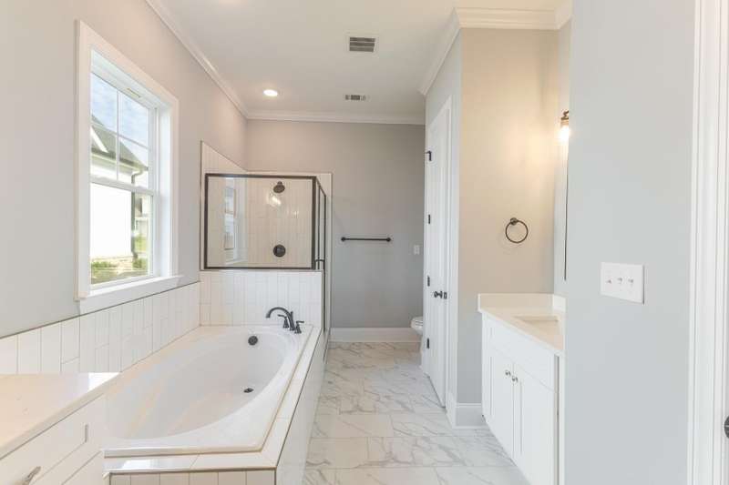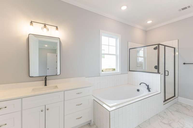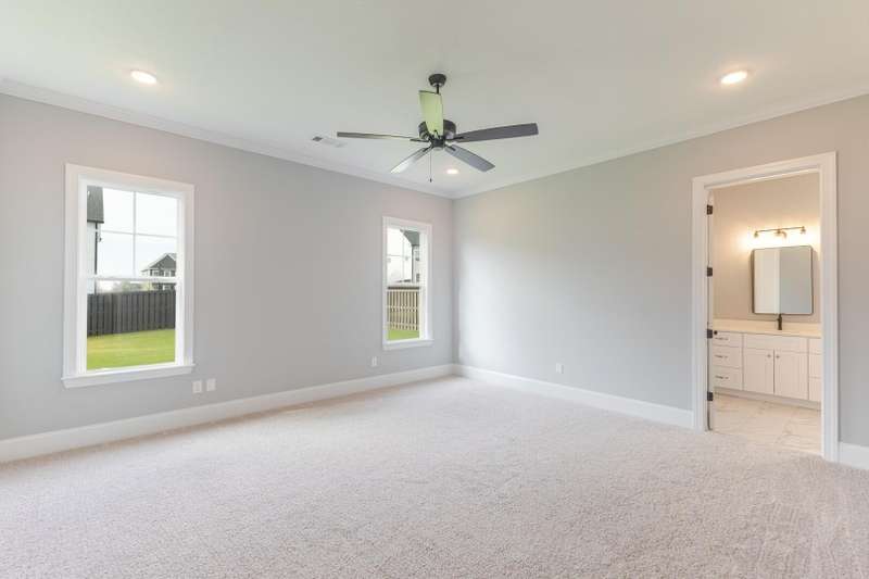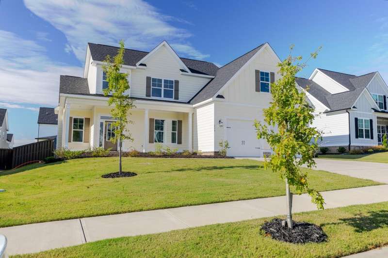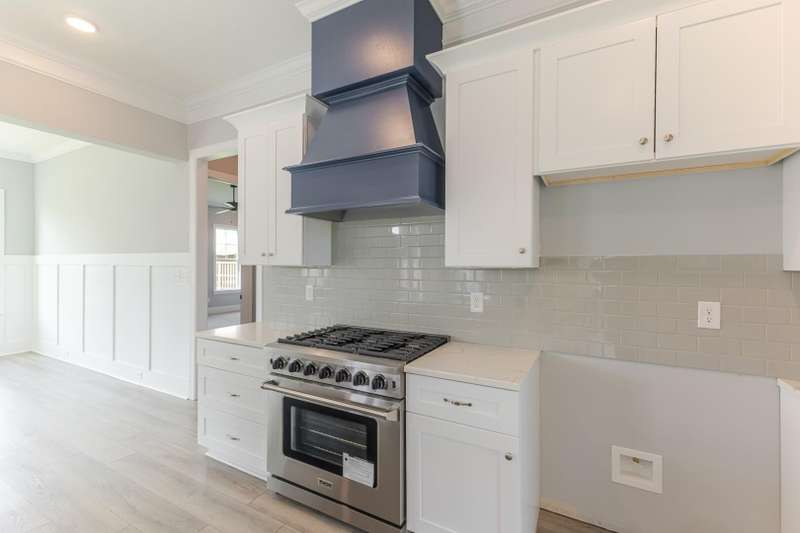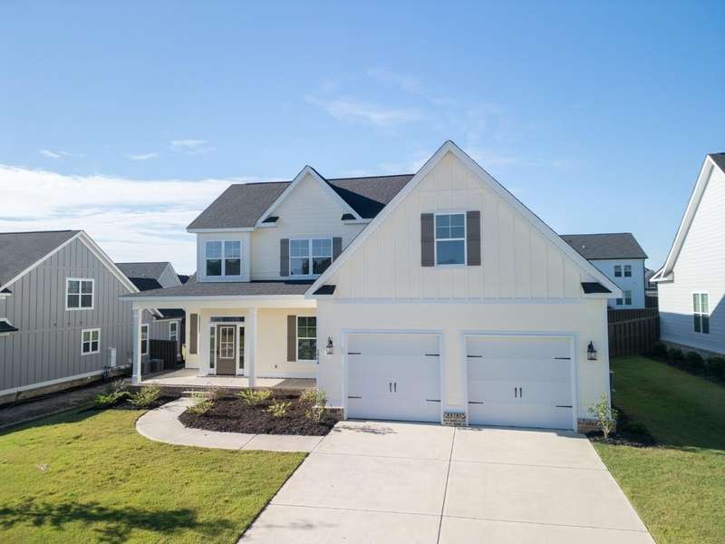 Beautifully built by IDK Homes, home offers style and comfort throughout. The open floor plan features a spacious great room with a gas log fireplace, a custom kitchen with island, walk-in pantry, gas range, and plenty of cabinet space. The owner's suite includes a spa-like bath with double vanities, garden tub, tiled shower, and oversized walk-in closet. Upstairs you'll find 3 bedrooms, a full bath, and a versatile flex room. Enjoy LVP flooring, granite counters, detailed trim, and a fenced backyard with covered porch and landscaping. Move-in ready and perfect for entertaining!