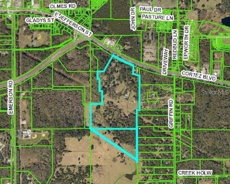 370 Acres (mol) with frontage on busy Cortez Blvd (SR 50) and Emerson Road that is currently zoned Agriculture, and has 4 parcels all being sold together. Multifamily and Single Family Development opportunity with the Master Plan to be reactivated for rezoning of approximately 88 acres with a Flood Zone of X. (Other 3 parcels are AE) The Master Plan that was approved for rezoning to CPDP by Hernando County has since expired. It was originally approved for a 263 unit with combined single family and multifamily housing development with a mix of 6,600 sf and 1 acre lots. This beautiful property has rolling hills, open meadows, has a nice variety of trees, and a small amount of frontage on the lake. Included with this land is a 4 bedroom home with a pool set on top of the highest point of the property and has incredible views. There are remains of older farm buildings that are not being used. Key#: 01249358,00362280,00362057,01355599 Old Survey attached/Being Sold As Is.