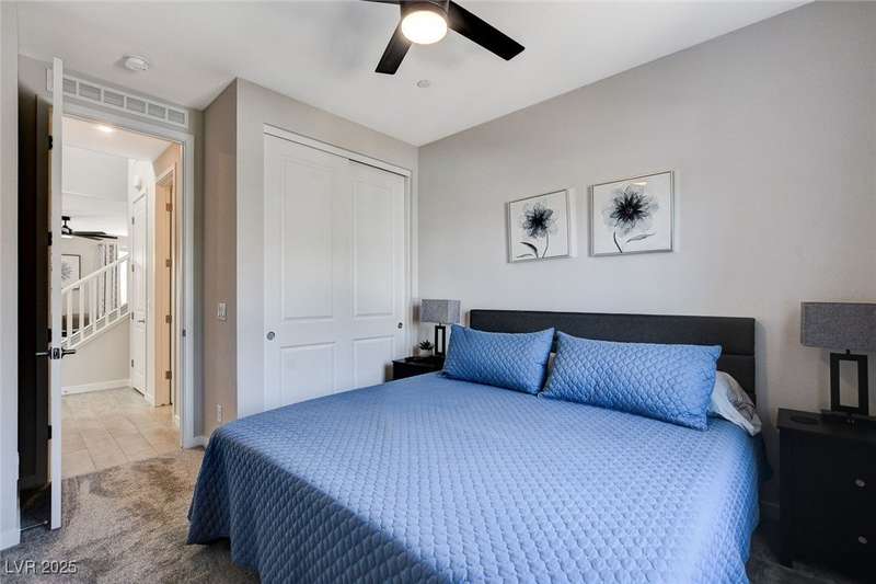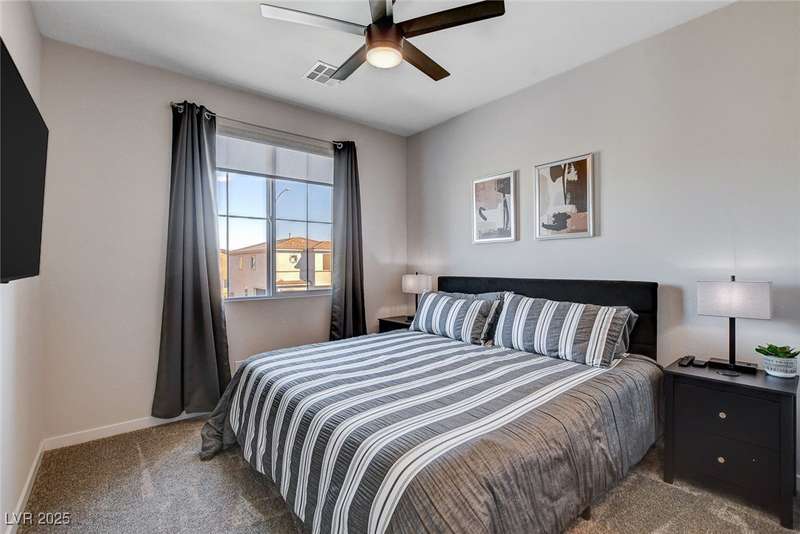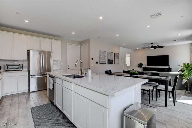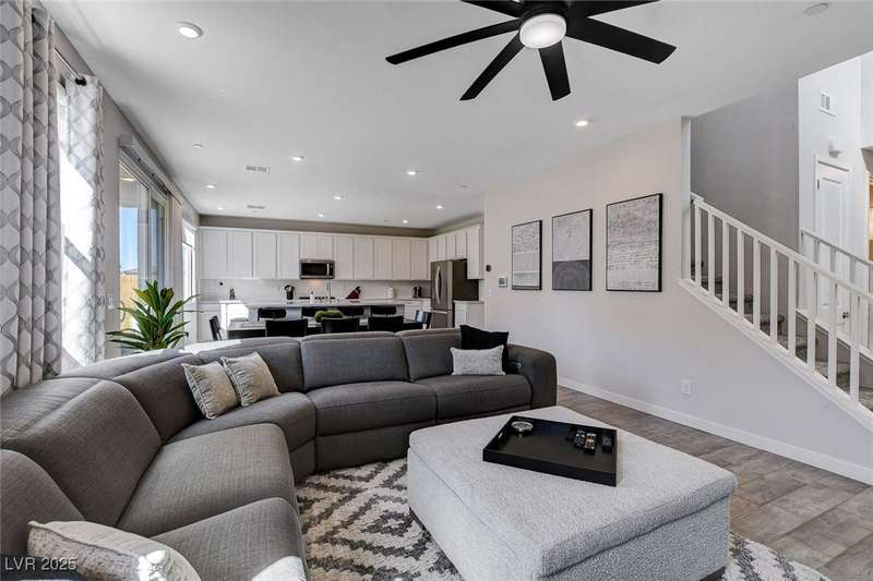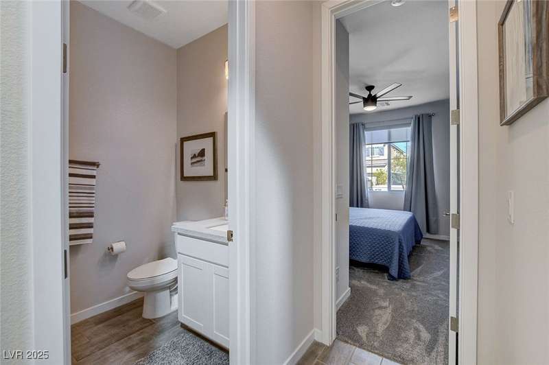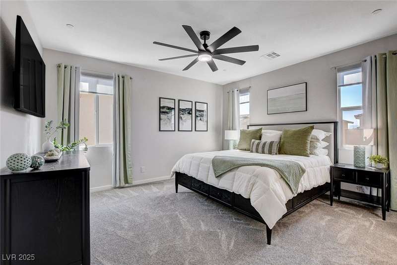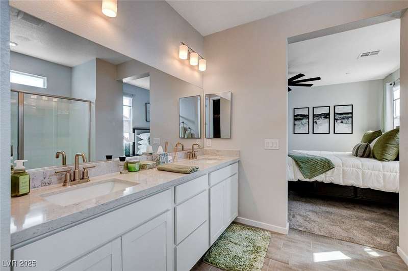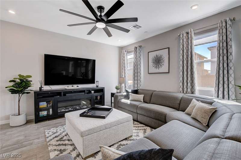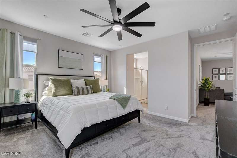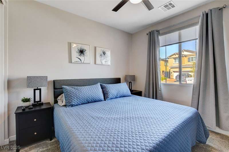 *PAID OFF SOLAR and BEAUTIFULLY FINISHED BACKYARD in this new Century Communities neighborhood in Cadence. *Actual square footage is 2,119. This one year old two-story home (Model: Residence 2119 at Modena II) offers an open-concept design with generous living areas. Inside, you’ll find a spacious great room, a stylish kitchen with breakfast nook, dining area, and a downstairs bedroom and ¾ bath. Upstairs includes two secondary bedrooms—one with a large walk-in closet, a convenient laundry room and a hall bath. The private primary suite features a large walk-in closet and an en-suite bath with dual sinks, walk-in shower, and makeup vanity. Notable upgrades include a large covered patio, 9’ ceilings, 8’ interior doors, over $5,000 in custom window coverings, $3,000 in designer ceiling fans, and a brand new water filtration system.