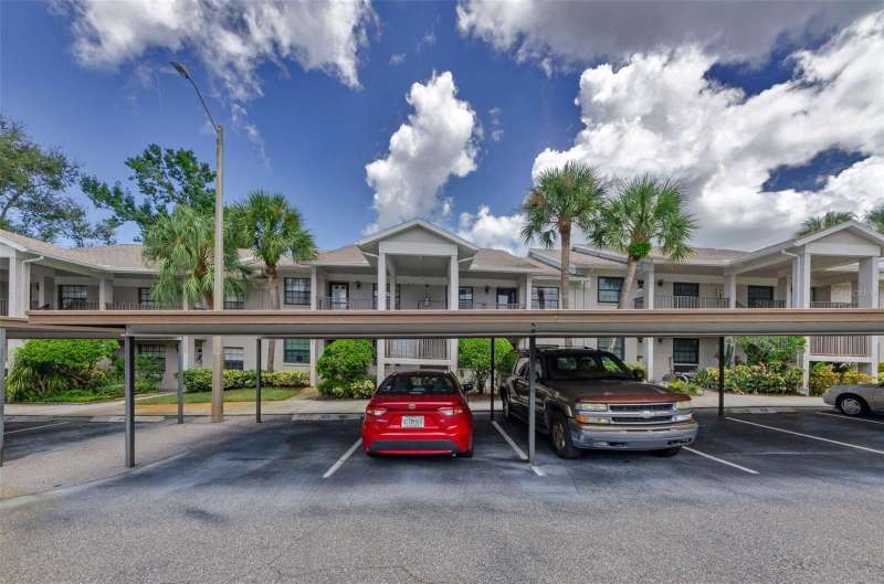 Put this on your list to see! Located in quaint desirable Dunedin with it's fun Main St that features local restaurants, breweries, and shops! Even the Pinellas Trail goes right through downtown which is a biking, walking trail that goes through the county. And a short drive to beautiful Dunedin Causeway and Honeymoon Park, all the stores, banks, medical you need close by, too! You can walk 2 blocks to Walmart Market, CVS and Dollar General stores. Ground floor home and covered parking at your doorstep. A quick walk to pool and clubhouse. Beautiful pond view from enclosed Lania. Updated kitchen with a terrazzo counter! Split bedrooms and primary bedroom has an en suite full bath and not 1 but 2 closets! Community is cat friendly, High and dry and not in flood zone or evacuation zone. Washer and dryer stay, too!
