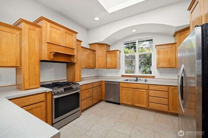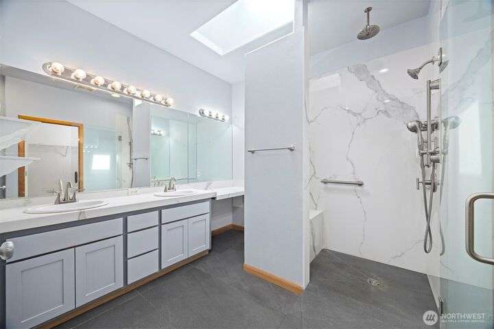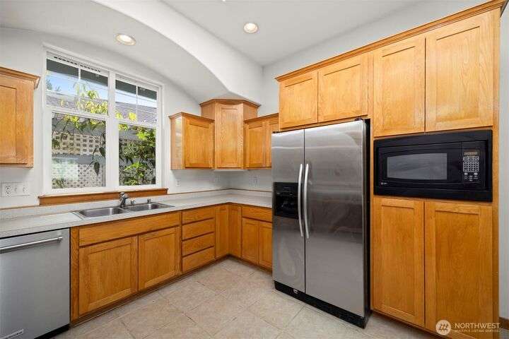 Discover comfort and elegance in this rare single-level, stand-alone 55+ condo, nestled within a desirable 16-unit community. Wake up to serene stream views from your private deck or unwind on the spacious patio. The open floor plan is perfect for entertaining, featuring soaring vaulted ceilings, wide hallways, two generous bedrooms, a flexible office space, and an updated 3/4 bath with a luxurious roll-in tiled shower. Ideally situated near scenic walking trails, beautiful parks, and top medical facilities—your perfect retreat awaits!