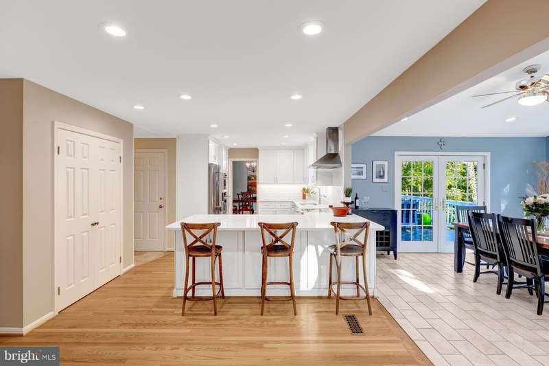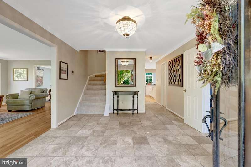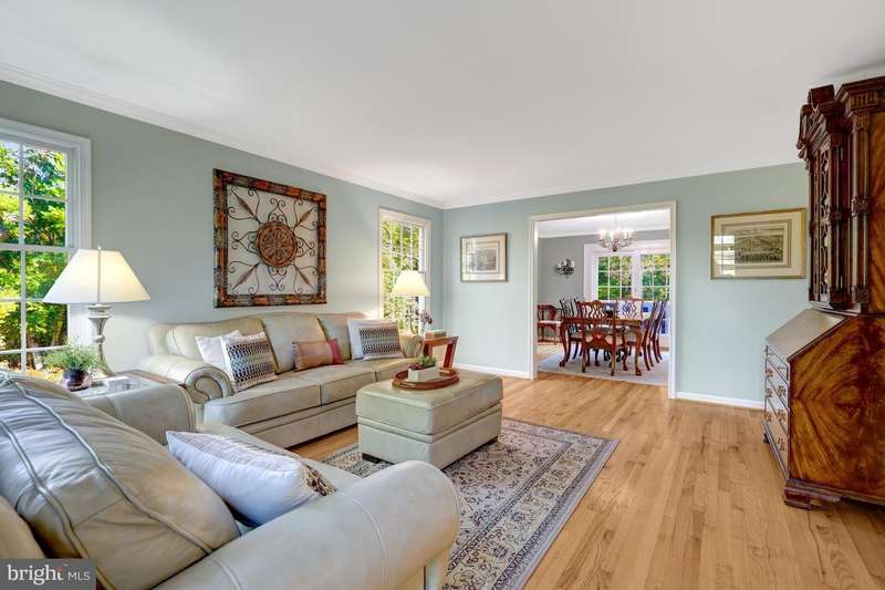 Set on nearly a full acre with serene wooded surroundings and side privacy from HOA land, this updated colonial includes 5 bedrooms and 3 1/2 bathrooms and over 4000 sq ft of living space The home is designed for entertaining, with a renovated white kitchen with quartz countertops and modern finishes, hardwood floors throughout, and an expanded sunroom filled with natural light and surrounded by private, wooded views. The sunroom's walls of windows create a bright, airy space that feels connected to the outdoors while offering complete privacy. Anchored by a wood-burning fireplace with a striking brick wall, the main level is bright and open. The fully finished walk-out basement features a the 5th bedroom room, a game room, a bar area, and opens directly to a covered patio and grilling area, creating a seamless space for entertaining and recreation. Located in the heart of Great Falls, this home is just minutes from Great Falls Elementary and a variety of community amenities. Enjoy all that the Great Falls community offers, from scenic trails to neighborhood events and gatherings. Step outside to a beloved sledding hill right across the street, and explore nearby trails that lead all the way to the Potomac River. Plus, take in stunning views of the Fourth of July fireworks right from your own home
