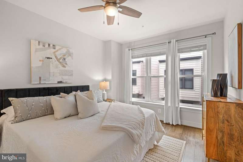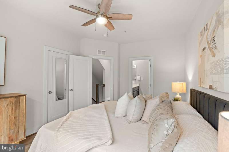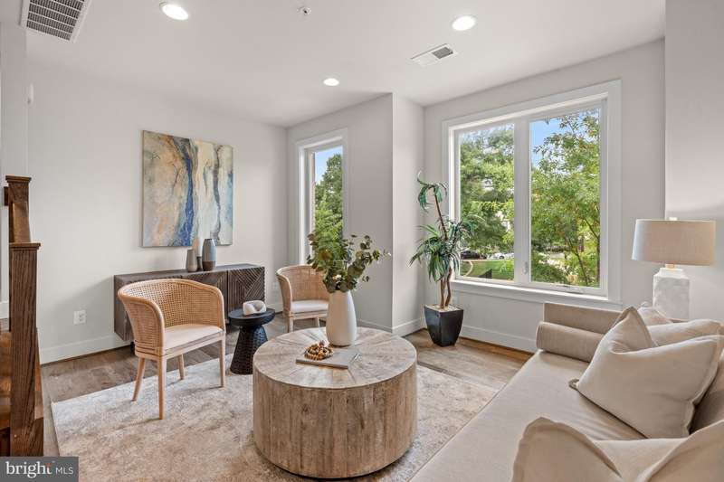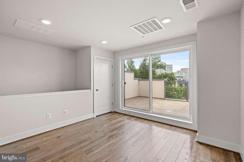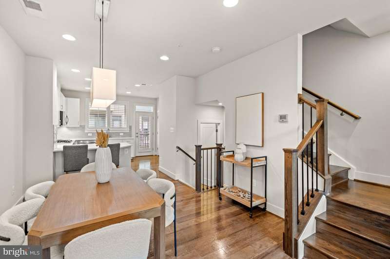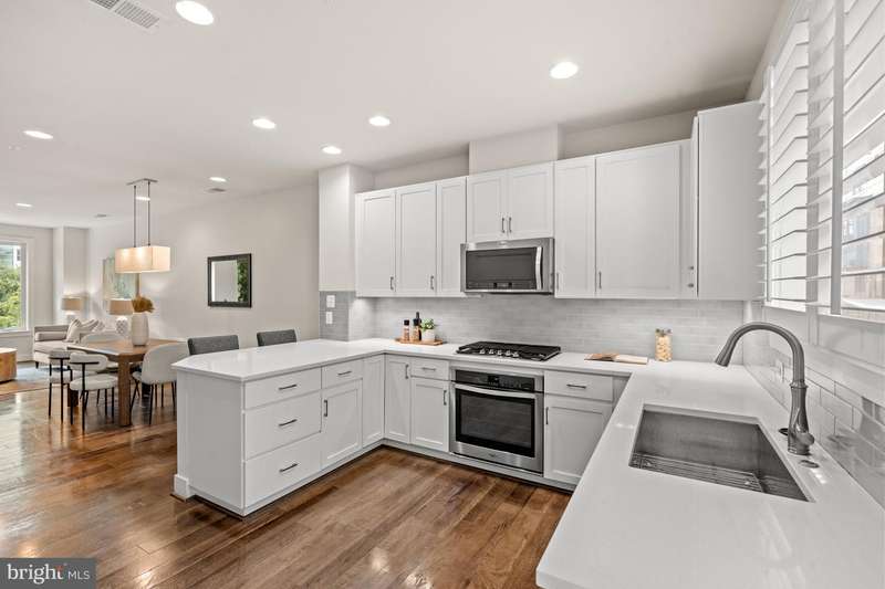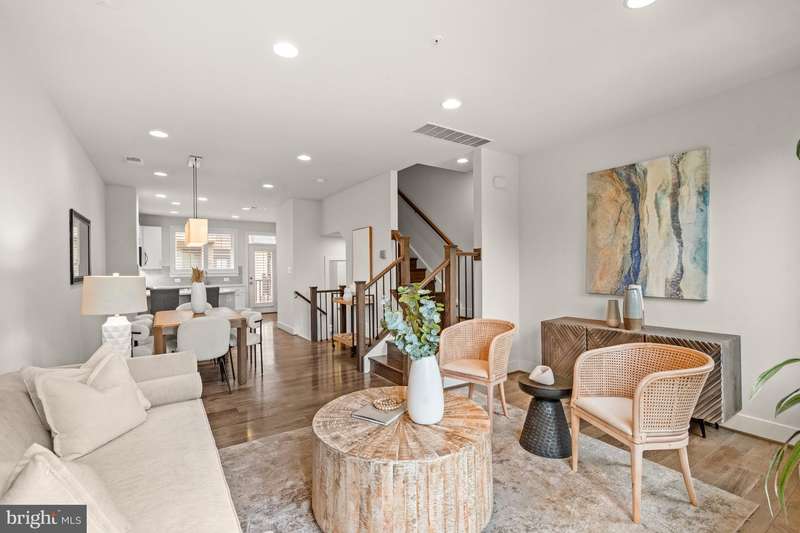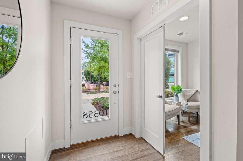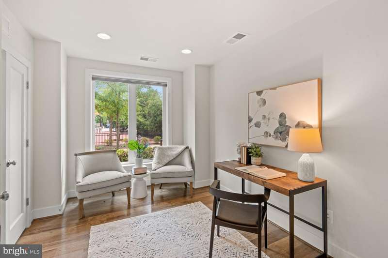 Ideally situated in the sought-after Montgomery Row community of Bethesda, this contemporary townhome offers approximately 1,755 square feet of thoughtfully designed living space across four levels. With 3 bedrooms, 3 full baths, and 1 half bath, the home combines modern comfort with an open, versatile floor plan tailored for both everyday living and entertaining. The entry foyer welcomes you with direct access to the garage and a private office, ideal for working from home. The main living level showcases a bright, open-concept design with a spacious living room, dining area, and a gourmet kitchen that opens to a rear balcony, perfect for morning coffee or casual gatherings. A powder room completes this level. Upstairs, the primary suite features a private bath and ample closet space, while a second ensuite bedroom and a convenient laundry closet add comfort and functionality. The top level offers a third ensuite bedroom and a versatile loft area that extends to a large private terrace, providing an ideal setting for outdoor relaxation. There are two additional parking spaces in the common garage and surface parking. With a prime Bethesda location near shopping, dining, and major commuter routes, this Montgomery Row residence blends style, convenience, and comfort for modern living.