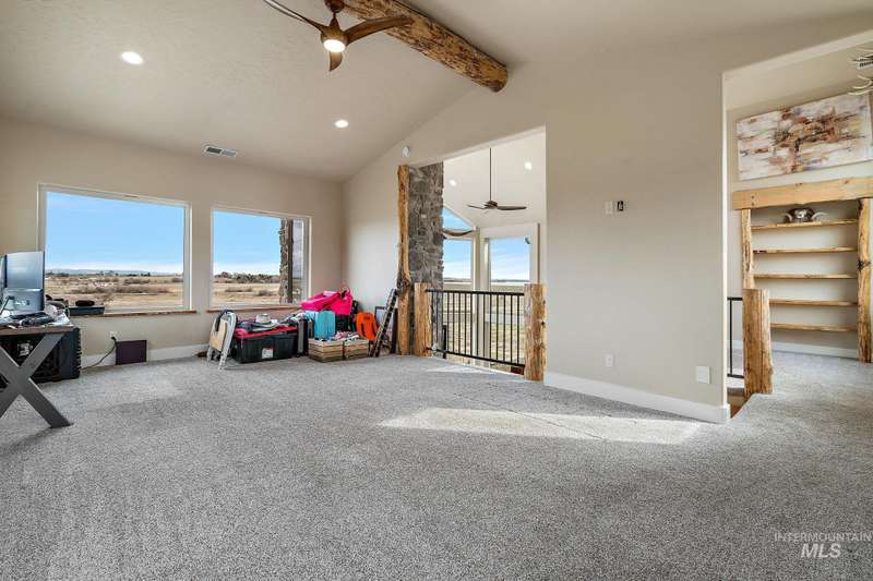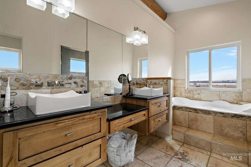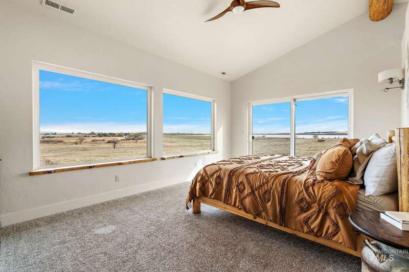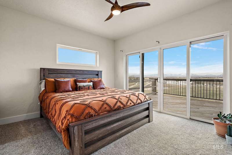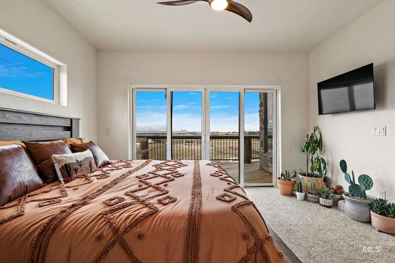 Stunning 5-bedroom, 4.5-bathroom, two-story home with basement and an ADU on 3.27 acres bordering a wildlife refuge near Lake Lowell! Located in a desirable gated subdivision with a private community pond, this exceptional property features two luxurious master suites with one on the main level. The upstairs suite offers dual vanities and a walk-in dual head steam shower. The main level includes a chef’s dream kitchen flowing into a great room with a wood-burning fireplace and a wraparound deck with a hot tub. The finished basement features two bedrooms, a full bathroom, a versatile bonus room, and a walkout patio. The true gem is the ADU which includes a bedroom, full bathroom with steam shower, built-in bar, 22-foot movie theater screen, office, and a spacious 49x39 shop with a 20x30 hanger door. Enjoy unobstructed views of the Owyhee Mountain Range, Boise Foothills, and Lake Lowell. As close as you can get to the lake with direct access to the North boat launch!