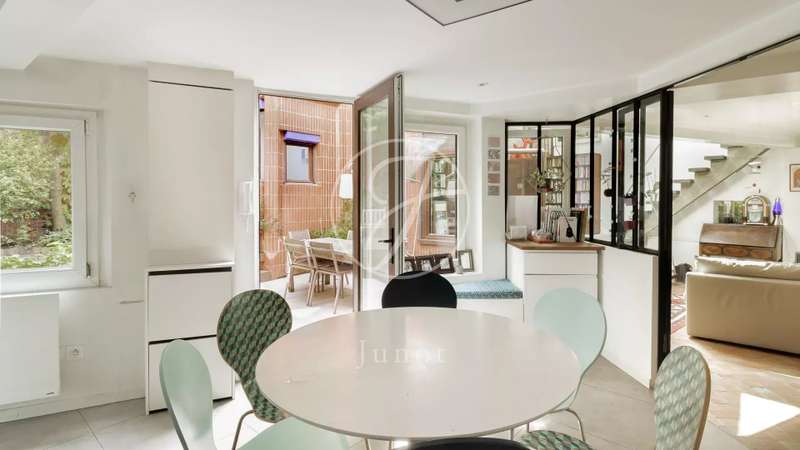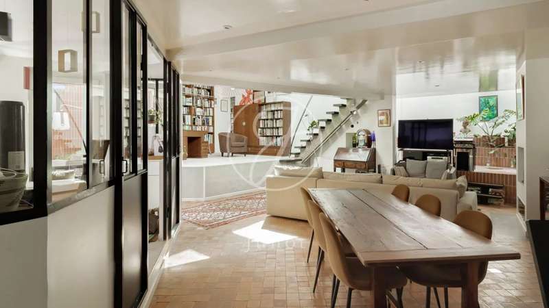 In the heart of the Commerce district and just a few meters from the metro, this superb 140.07sqm loi Carrez architect-designed house, spread over two levels, is located in a former industrial building that will seduce you with its generous volumes, terrace and garden. In absolute calm, the house comprises, on the garden level, a pleasantly proportioned living room, an independent kitchen/diner, a vast study, a first bedroom with shower room and separate toilet, and a laundry room. Upstairs, there are three bedrooms, a shower room and a bathroom with toilet. Plenty of storage space completes the layout. A room in the garden and two cellars are included in this rare offer in Paris. As an option, a parking space in the street can be purchased for an additional 30,000 euros.