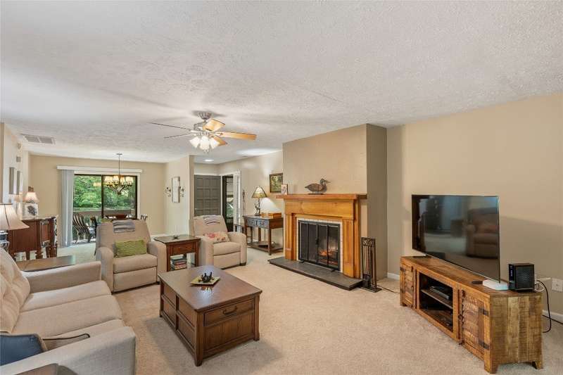 Located in the Hilltop community of Sapphire Valley, this furnished end-unit condominium offers a welcoming mountain retreat with convenient access to resort amenities and the charm of the Plateau. The interior features a spacious great room with a fireplace and electric logs for ambience, along with an enclosed sunroom that extends the living area and provides flexible space for entertaining and relaxing. A dining area opens to the porch, and the large primary suite offers a private bathroom. A half bathroom serves guests. Unlike many Hilltop units, this one includes central HVAC, providing reliable year-round comfort. Offered partially furnished, this condo is move-in ready and positioned as an ideal full-time residence, seasonal getaway, or investment property. Ownership includes access to Sapphire Valley Resort amenities, including heated pools, tennis courts, pickleball courts, a fitness center, a dog park, minigolf facilities, a nine-hole golf course, and Fairfield Lake for swimming and boating. Winter fun abounds with skiing, snow tubing, and snowboarding. Just minutes from Cashiers and a short drive to Highlands, the property is close to boutique shopping, dining, and outdoor recreation, making it a convenient and versatile Plateau retreat.