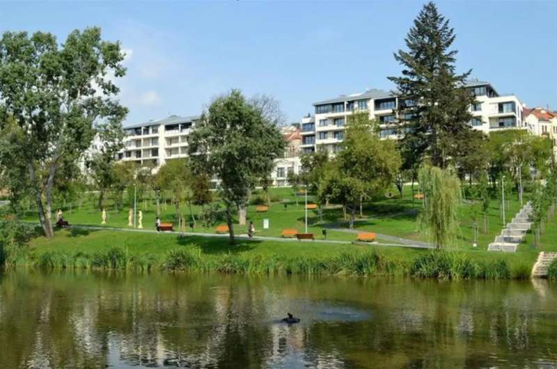 Kajetanka is a truly unique project as it consists of a new building sensitively placed within the extensive Kajetanka park which contains two historic buildings: a baroque manor with a restaurant and an Orangery.