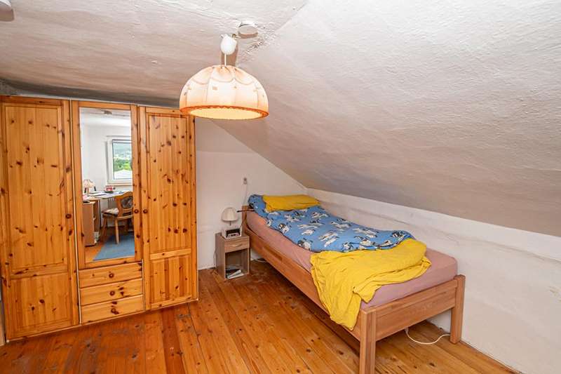 This detached house was built in 1951 and is situated on a plot of approx. 726 m². On the first floor is the open kitchen, dining and living area, the guest WC, the conservatory and the sauna. There is a bathroom and 2 bedrooms on the upper floor. Two photovoltaic systems have been installed on the roof of the property. In addition to the feed-in tariff of approx. 2500 euros net, it is also possible to use your own electricity from the system. The house also has a functioning solar thermal system, which provides a free source of hot water via solar energy. There is currently an electricity feed-in tariff of approx. 300 euros per month, which will be paid for another 2 years. The property is heated by a cost-saving central heating system with a buffer tank. The kitchen stove is also operated with this heating system. The adjoining carport has space for both a minibus and a small car. If this property has aroused your interest, we look forward to hearing from you personally.