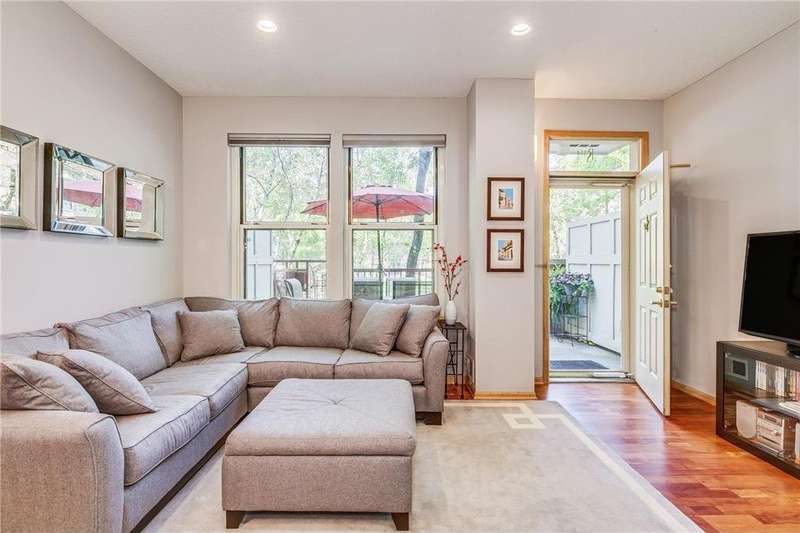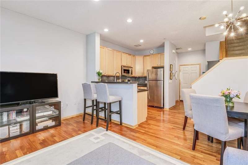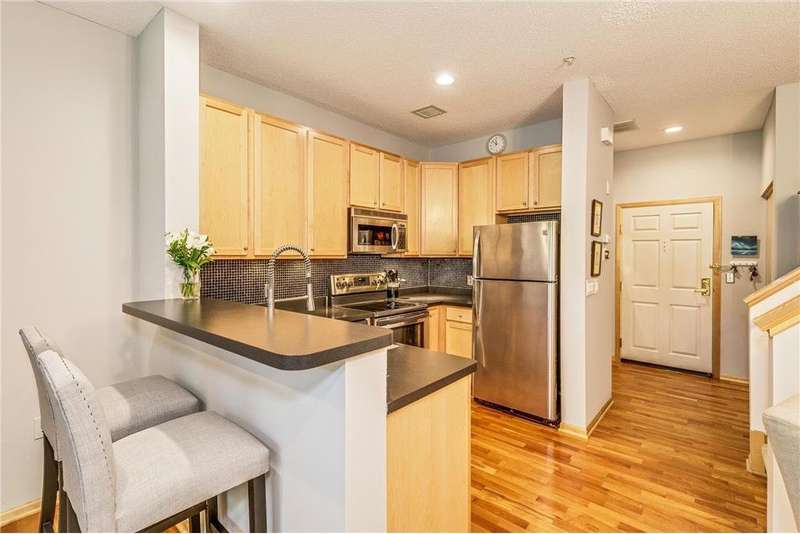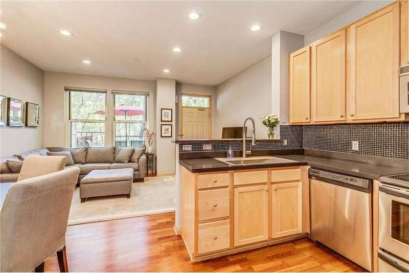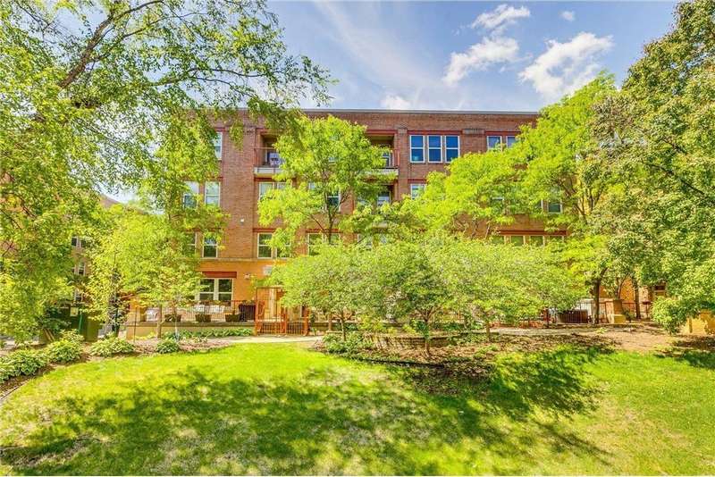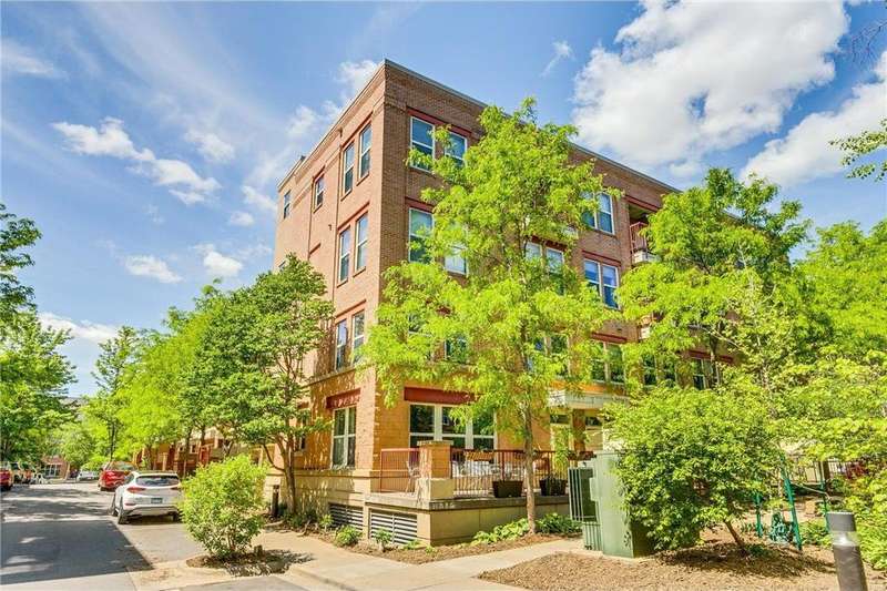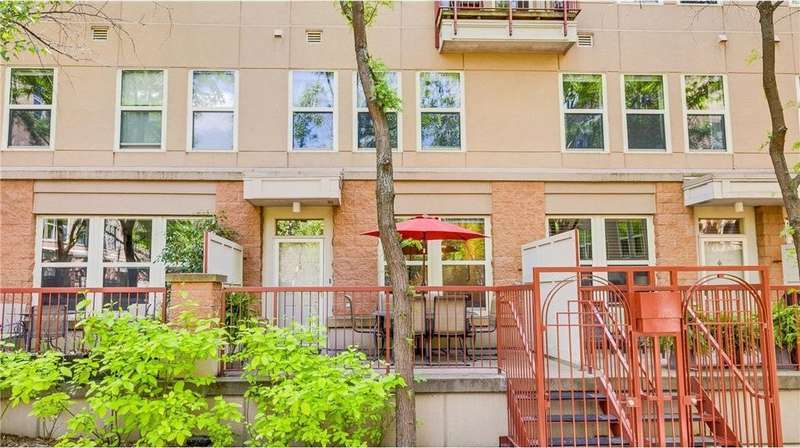 This 2 story condo faces the the well landscaped courtyard with it's private entrance thru the gated patio. Main level has wood floors with an open floor plan. The updated kitchen features stainless appliances, granite countertops & tiled backsplash + Breakfast bar. There's informal dining area plus spacious living room with an abundance of natural light. There's also a main floor 1/2 bath and large front hall closet. Upper level has a loft/office area, another large storage room & in-unit laundry. The spacious master bedroom with a walk-in closet and full bath overlooks the courtyard. The heated garage stall has additional storage locker located directly in front of stall #2. This is condo is an urban oasis, just steps to the Mississippi trail system perfect for walks, dogs and bike rides. The access to the best restaurants in the North Loop is incredible. Bar LaGrassa, Porzana, Spoon & Stable, & Maison Margaux are just a short walk. Or you can walk to the Twins game, music venues, theatre, grocery, wine shops as well as the light rail stop next to the Twins stadium. Walk score = 88. There's also ample guest parking along the private drive between the buildings. One dog allowed in the first floor units. This condo is well maintained with little signs of age. Pride of ownership is very evident in this condo.