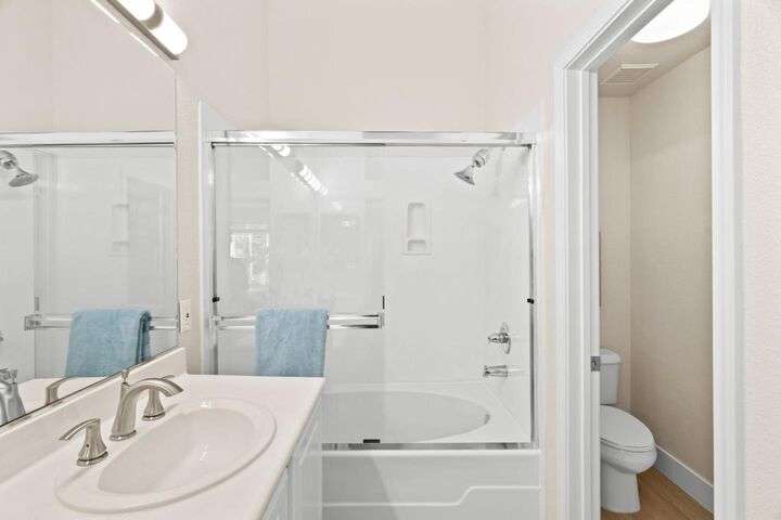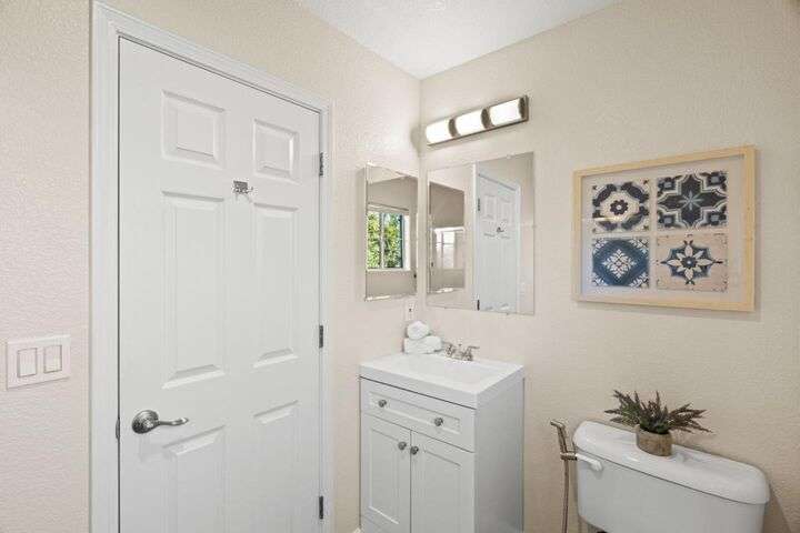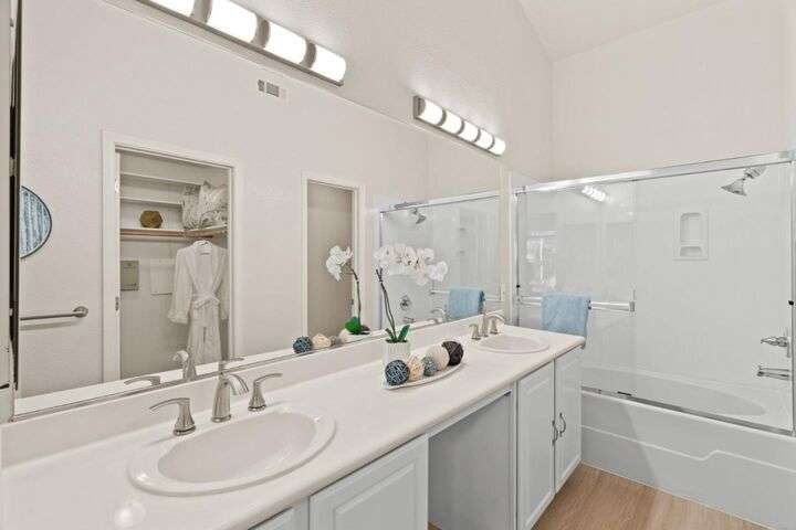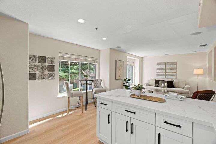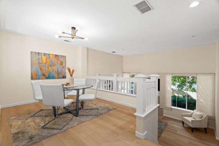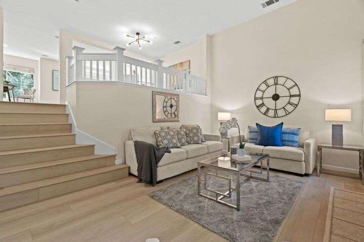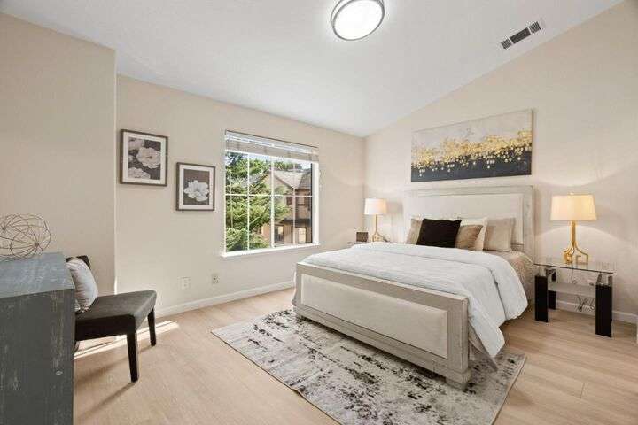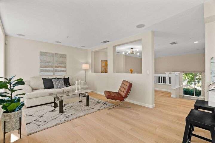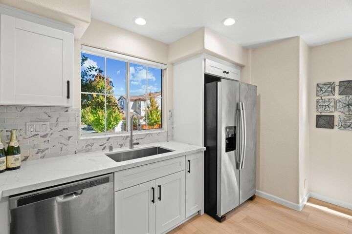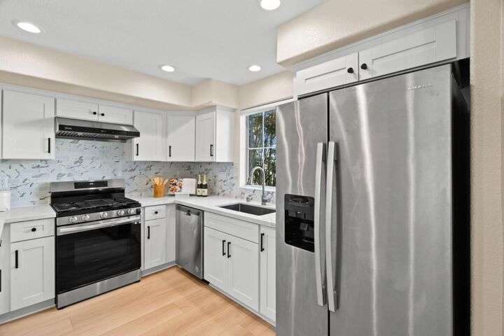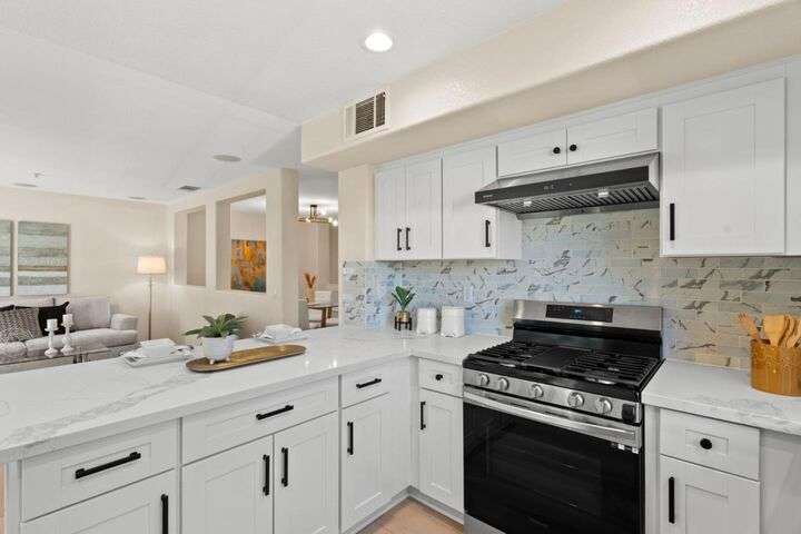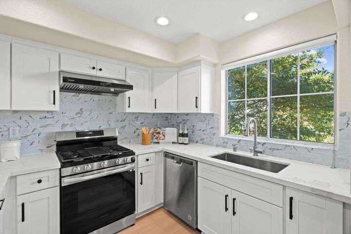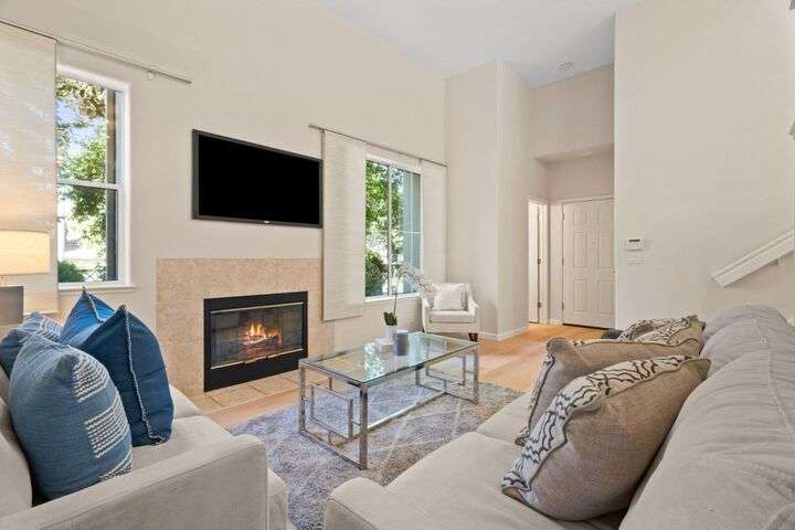 UPDATED CORNER HOME IN PRIVATE COMMUNITY | This tastefully modernized corner townhome delivers stylish convenience, prized centrality, and modern elegance to the exclusive Vineyard Park community. Open, airy interiors filled with natural light boast upgrades like luxury floors, modern fixtures, a glamorous kitchen remodel, and more! Enjoy indoor-outdoor living with multiple gathering rooms, a large secure patio, and no neighbors directly in front. The kitchen showcases quartz countertops, custom Shaker cabinetry, modern full backsplash, and stainless appliances, including a gas range with griddle. Soaring ceilings cover a primary suite fitted with dual vanities and an oversized walk- in closet. Additional highlights include a gas fireplace, surround sound wiring, and an attached, oversized two-car garage. Within one mile of multiple parks, shopping centers, and exceptional schools while also near the library, golf, hiking, commuter routes, and much, much more!