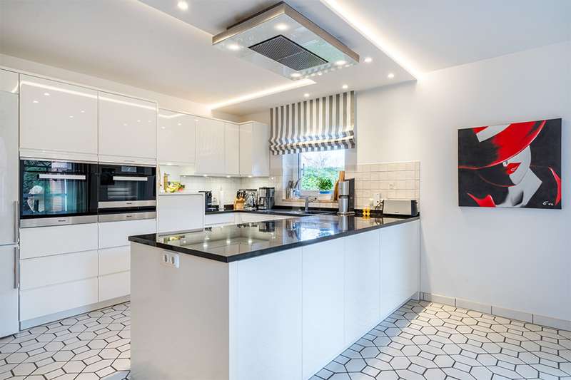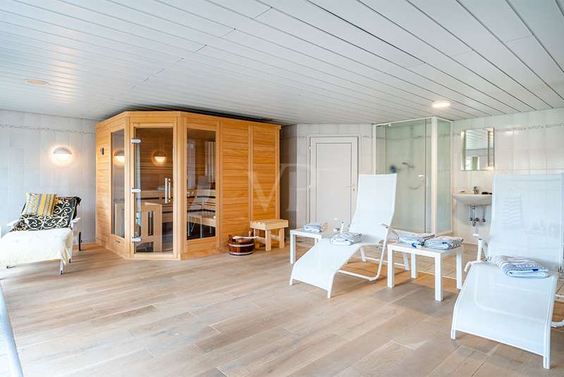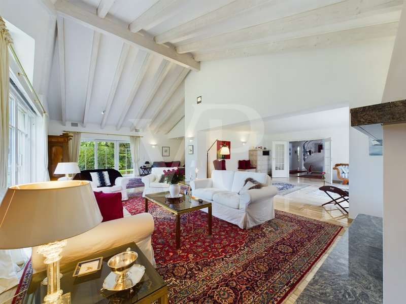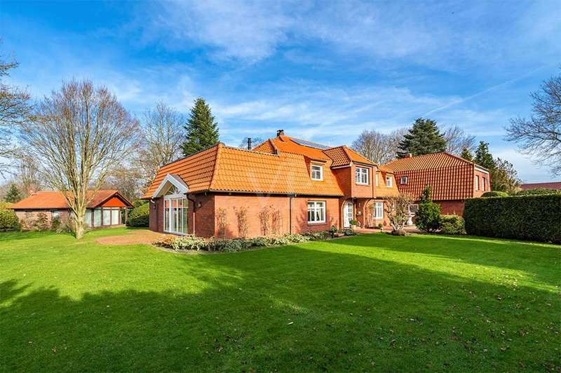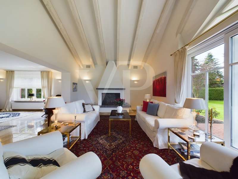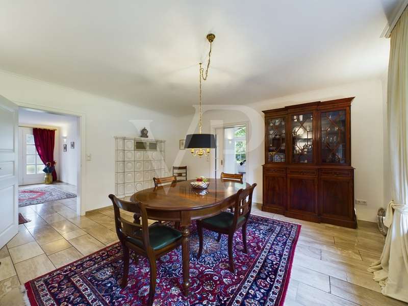 This well-kept property consisting of a main house, a granny apartment and a spacious garden house was built on a plot of approx. 3,840 m². A plot of approx. 1,828 m² directly behind it extends the property. With a living space of approx. 350 m², this property offers enough space for a large family. The villa has a total of 10 rooms, including 6 bedrooms and 3 bathrooms. Your new home impresses with a successful floor plan, generous window fronts and high-quality materials. The furnishings are exclusive and ensure a pleasant living atmosphere. On the first floor, the underfloor heating together with an impressive gas fireplace and a traditional tiled stove create a warm atmosphere The wellness area with swimming pool and sauna, which was added in 1997, invites you to relax intensively. The swimming pool was closed by the current residents, but can be easily reactivated. Here you can relax and unwind after a busy day. A cozy granny apartment with separate access is ideal for guests or as a separate work area in the office or home office. A highlight of the property is the fully fenced garden, which can be described as park-like due to its design. Various terraces and the balcony offer a variety of opportunities for outdoor recreation. The outdoor area also has a workshop, a tool shed, a bicycle garage and a covered wood store. The location of the house is ideal for families looking for peace and nature. A spacious garden shed on the property also offers further possibilities for use. A double garage with a sectional door and five additional parking spaces are available for your vehicles. The villa is accessed via an electric gate, which provides additional security. This villa is suitable for both families and buyers looking for a prestigious yet versatile residence. Thanks to the extensive modernization and high-quality furnishings, this property meets high standards of modern, comfortable living and at the same time offers sufficient space to realize individual living dreams. A viewing is well worthwhile to discover the full potential of this property.