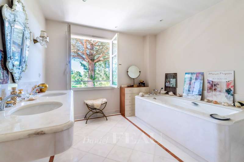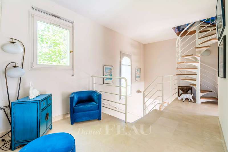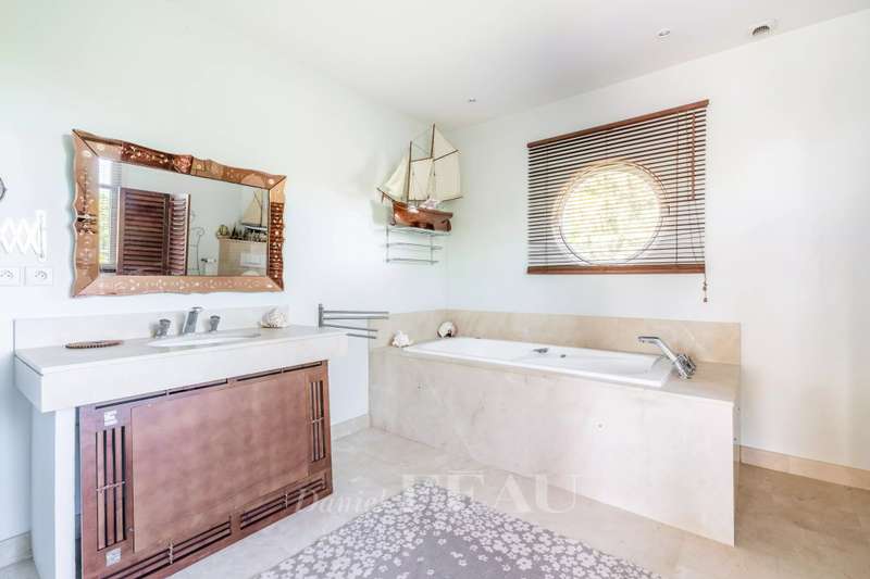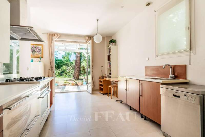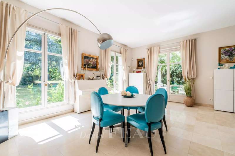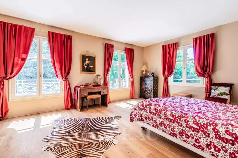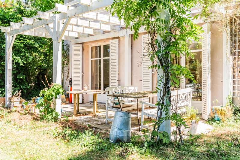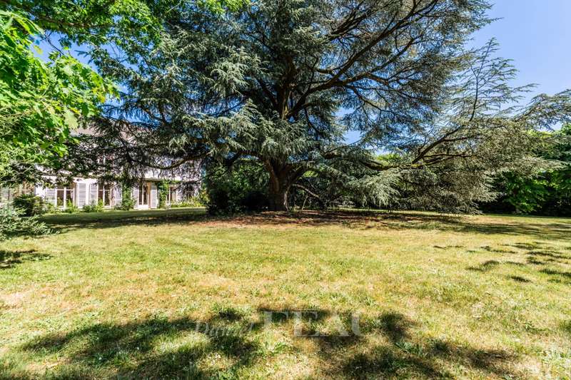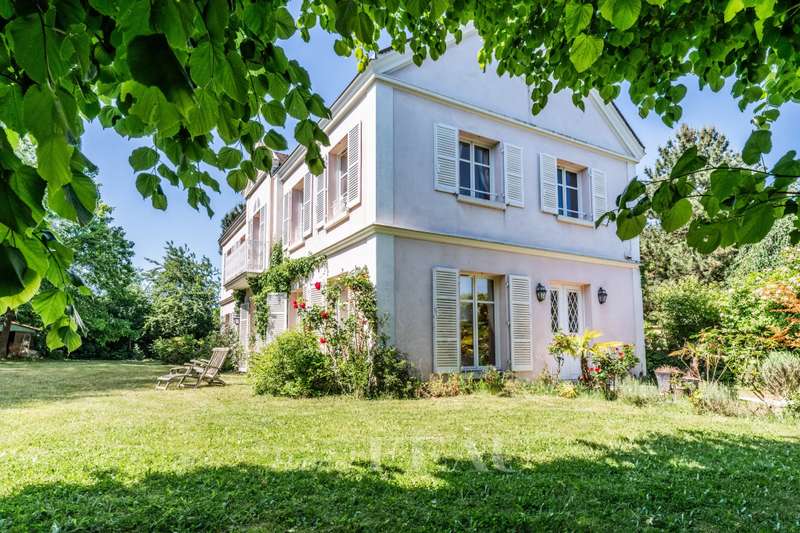 This bright and peaceful architect-designed property in walking distance of the centre is set in about 3600 sqm of leafy grounds. It includes a near 72 sqm triple living/reception room with a fireplace, an open-plan kitchen, four spacious bedrooms, two bathrooms, a dressing room, a wc and a room to finish fitting. On a partial basement with a boiler room and storage room. Parking space for several cars.