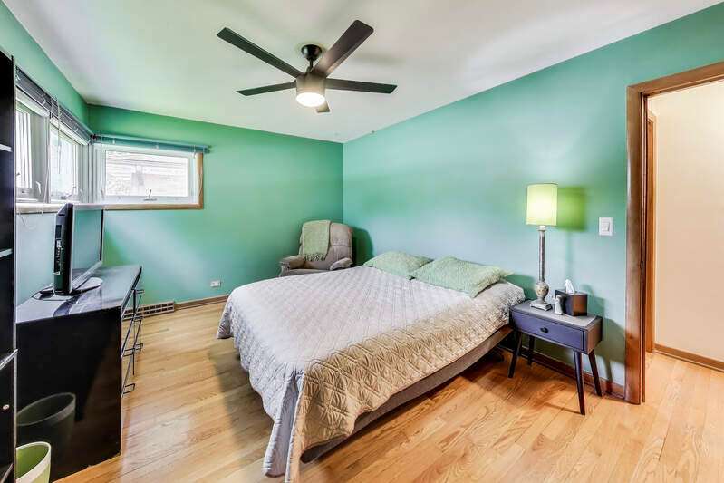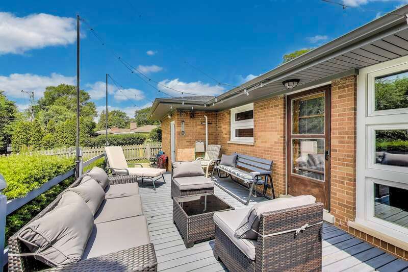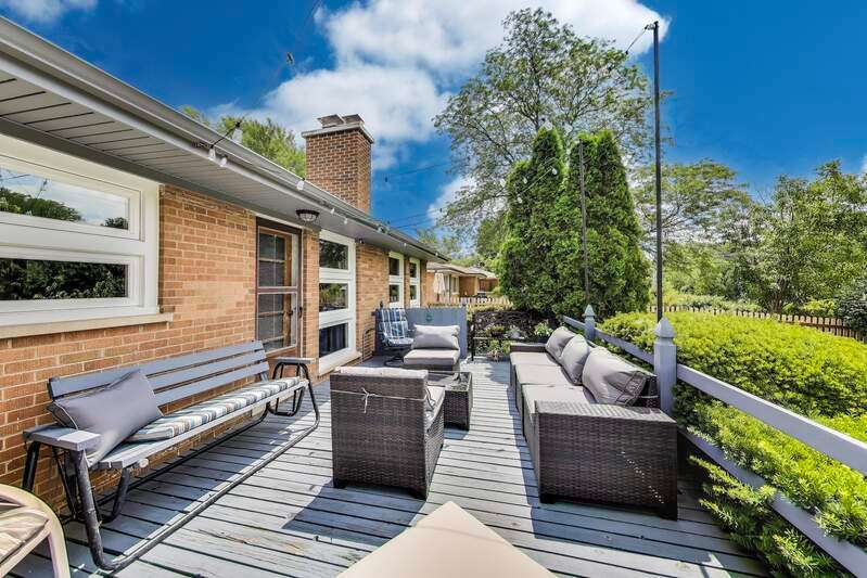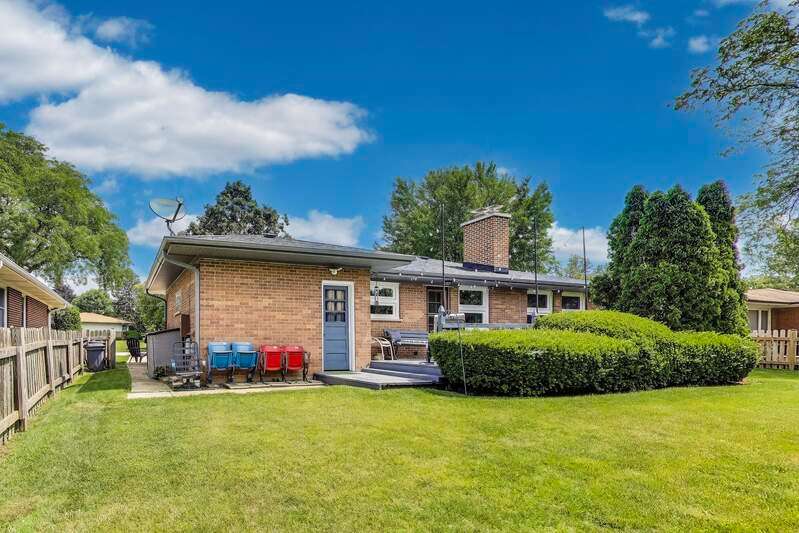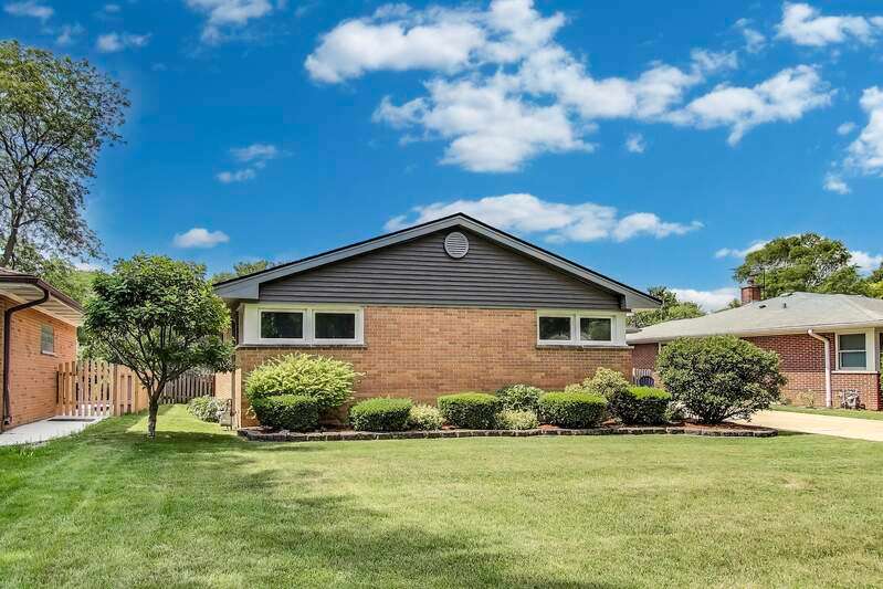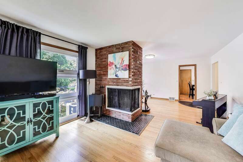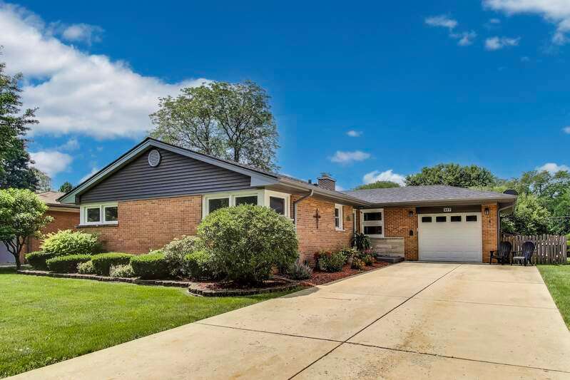 Inviting 3 bedroom ranch near Lions Park! Welcome to this beautifully maintained home featuring a desirable reverse layout and a sunlit living room with a charming wood-burning fireplace overlooking the fully fenced backyard and deck-perfect for entertaining or relaxing. Enjoy the warmth of hardwood flooring throughout. Eat in kitchen with newer appliances. Three generously sized bedrooms with great closet space. The expansive basement nearly doubles your living area, offering ample room for recreation, storage, and even a walk-in clothes closet. Peace of mind comes with numerous recent updates: windows, roof, gutters, fascia, soffits, chimney rebuild and furnace all approximately 2 years old; A/C just 3 years old. Sewer line replaced 5 years ago. A wide driveway adds everyday convenience. Ideally located just a block from Lions Park School and the site of brand-new park district facilities coming soon. Plus, you're just minutes from the Metra, shops, and restaurants in town. This home blends comfort, charm, and location-don't miss it!